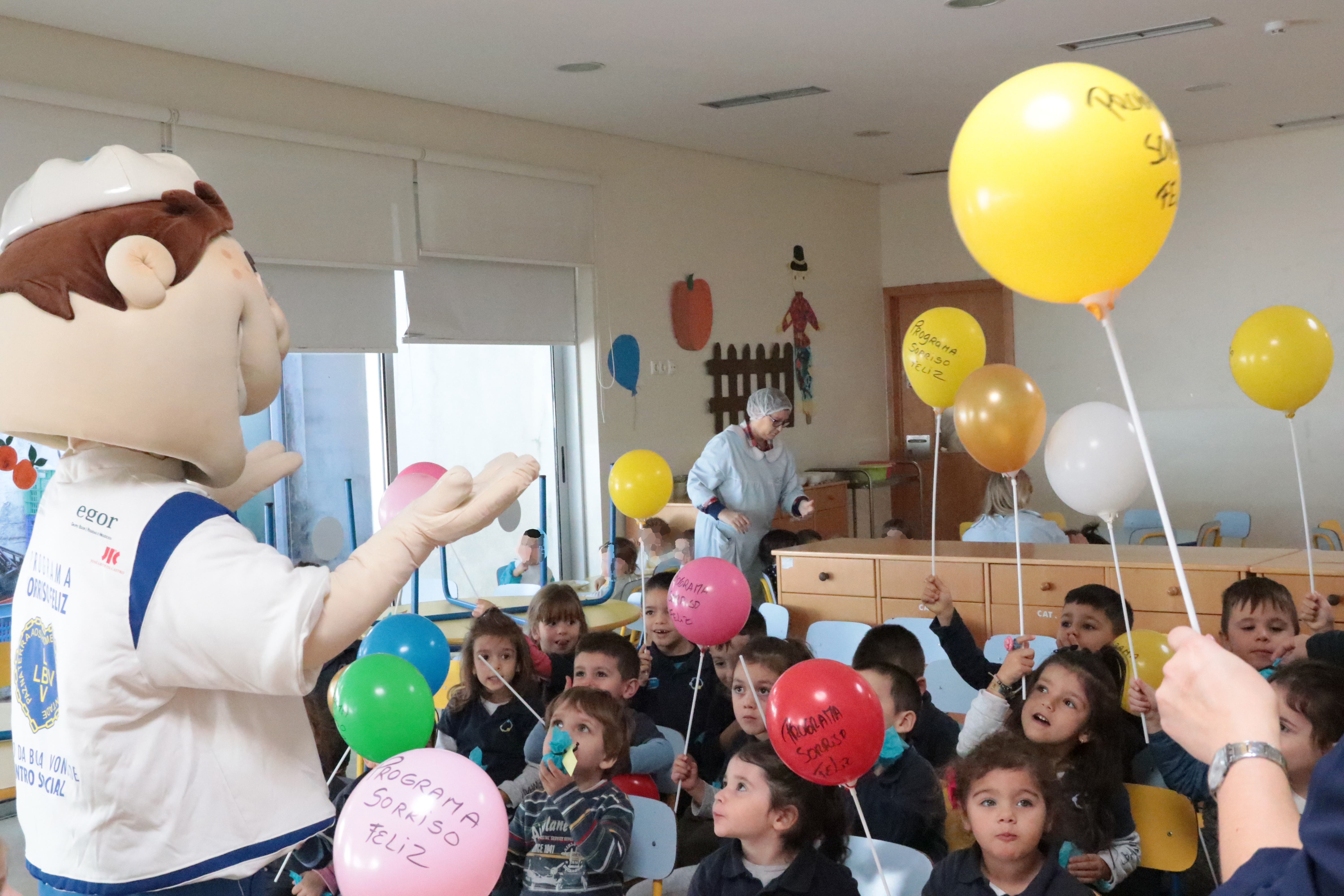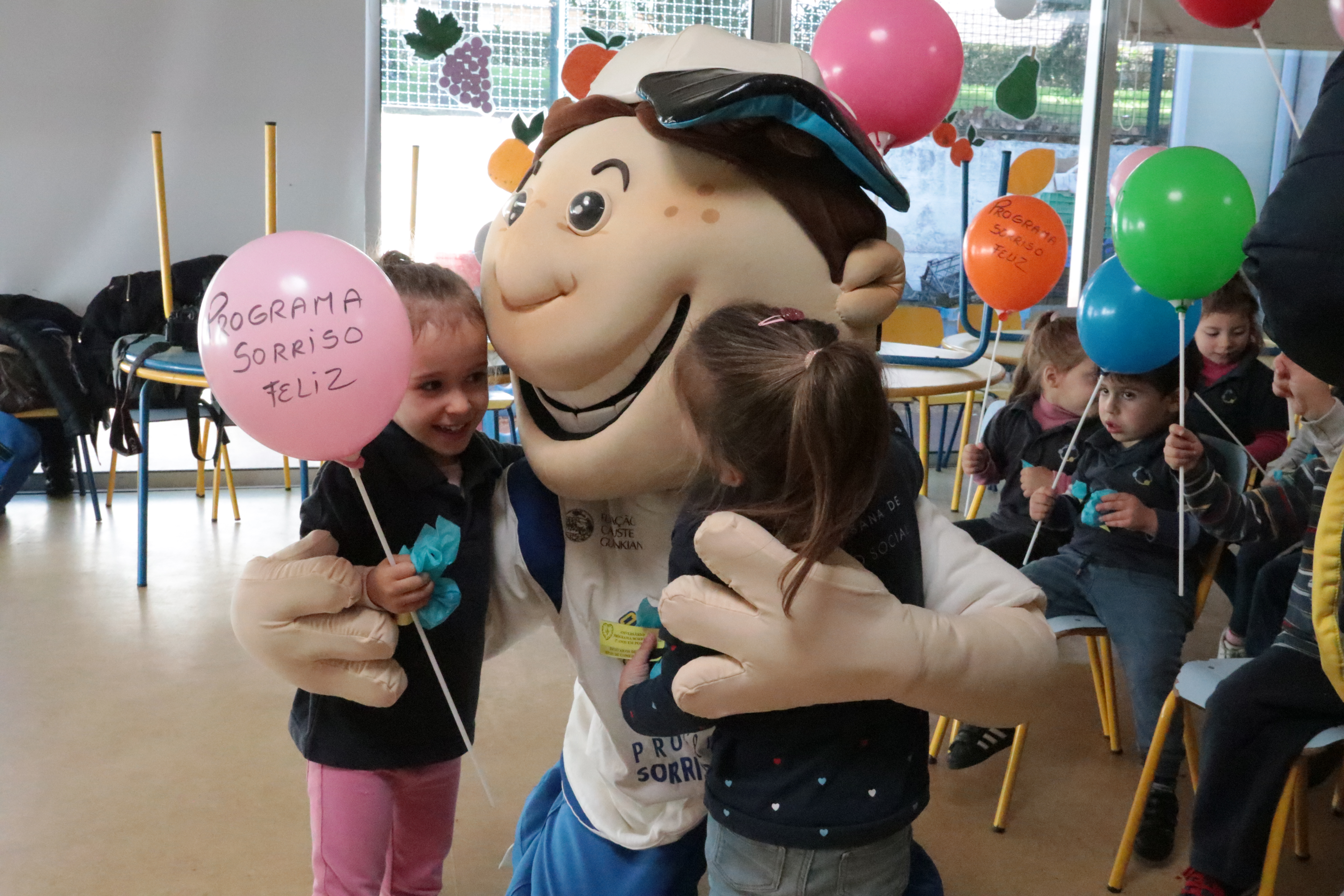 A mascote do “Sorriso Feliz”, o “Edinho”, esteve no Centro Social Fonte da Moura e cativou os mais pequenos que lhe deram muitos miminhos.