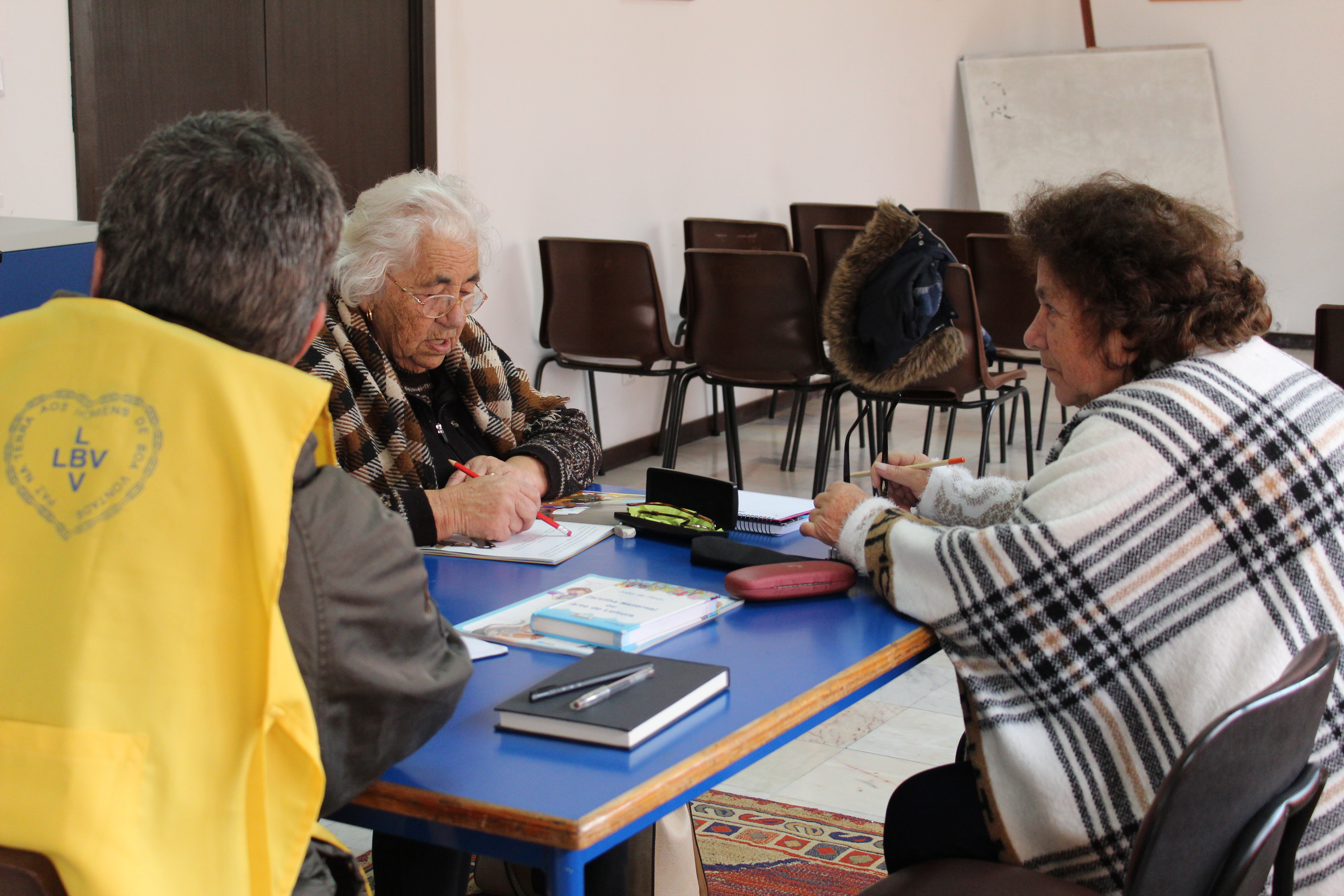 Todas as quartas-feiras e sextas-feiras, entre as 14h00 e as 16h00, decorrem aulas de alfabetização para adultos no Centro Social da Legião da Boa Vontade, na cidade de Coimbra, lecionadas pelo voluntário da instituição, o professor Fernando Seabra.