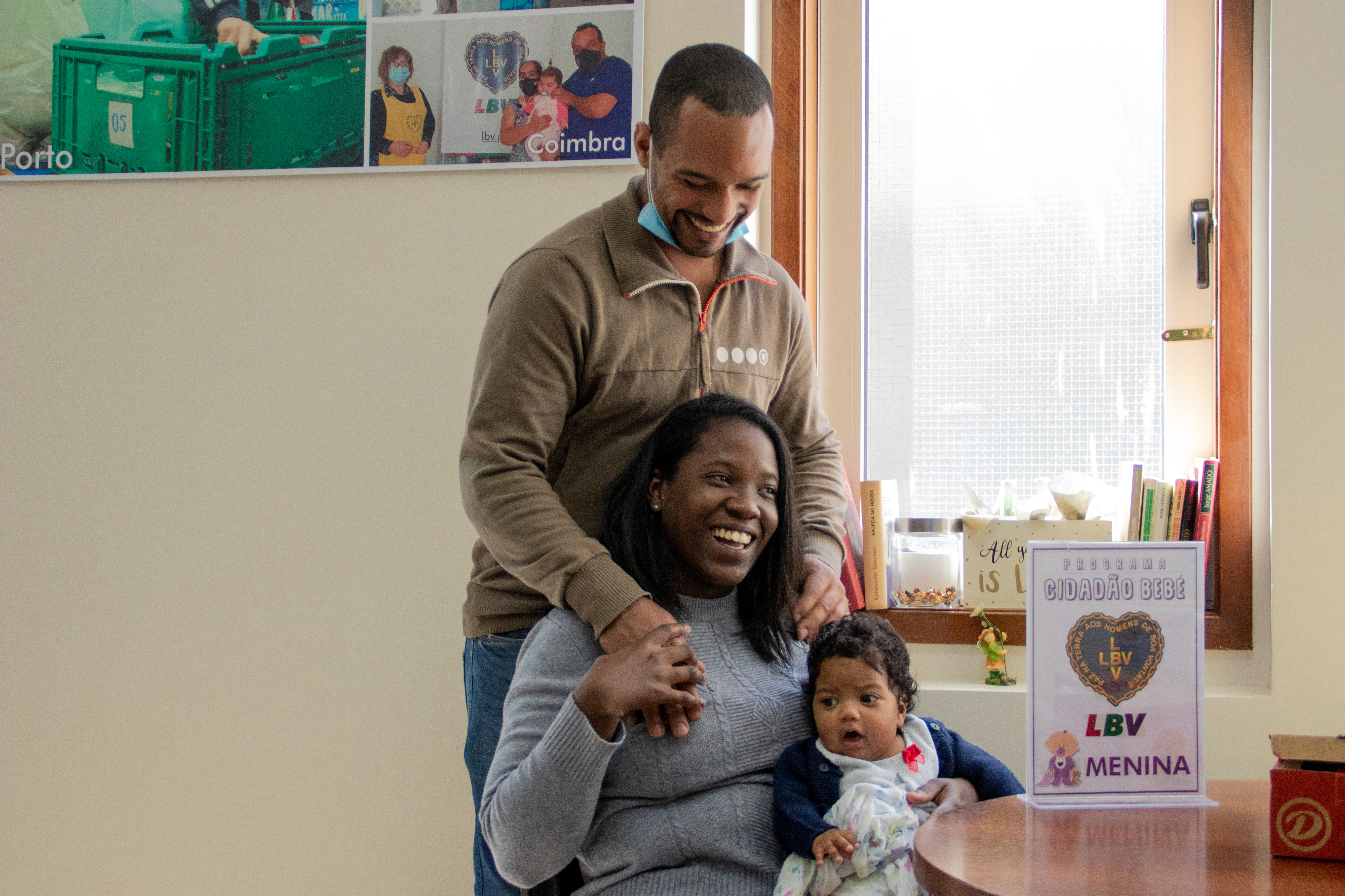 David e Thãmara vieram receber roupinhas, fraldas, utensílios para a sua bebé de três meses, na cidade do Porto.