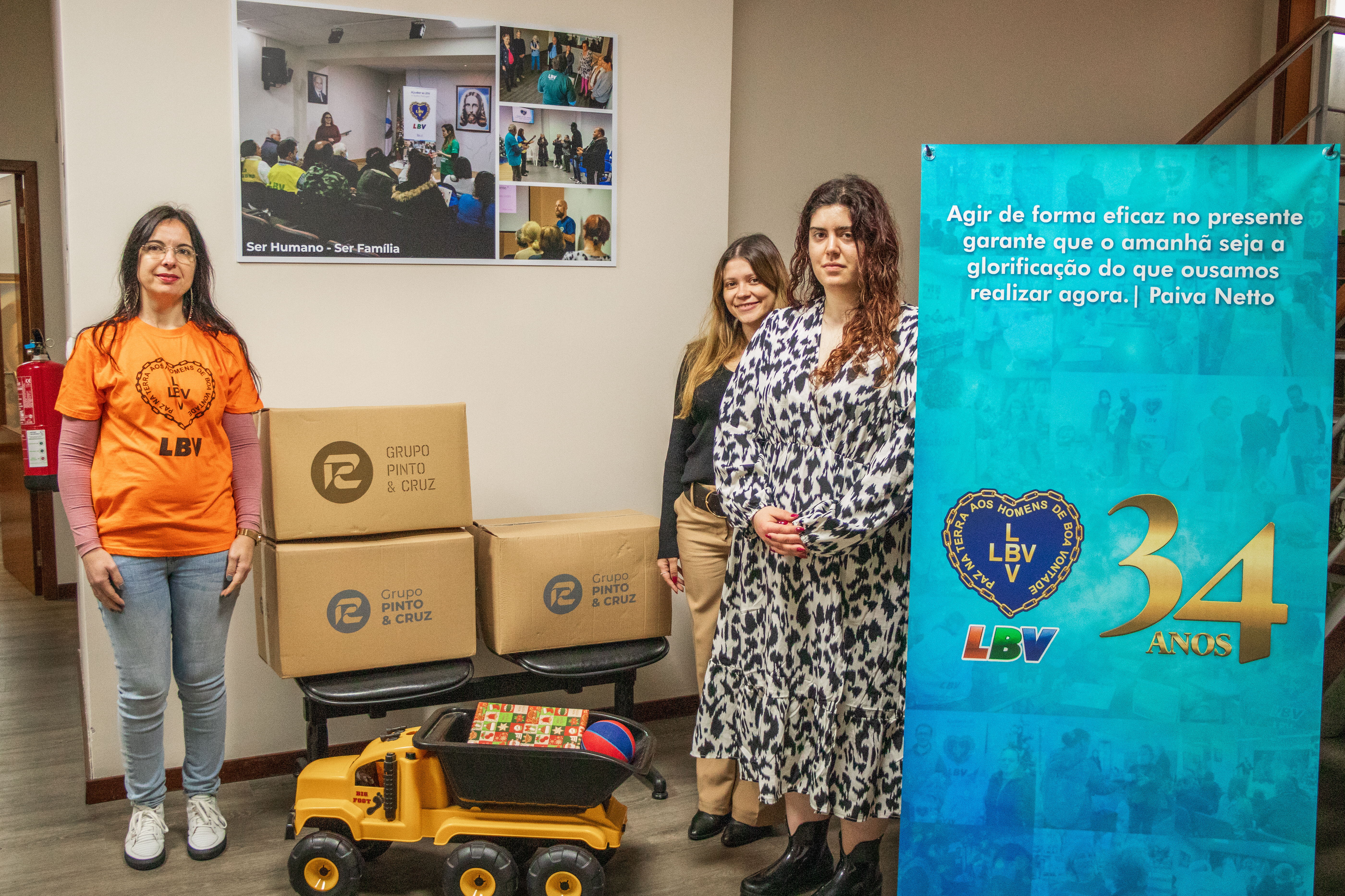A LBV recebeu a visita de Flora Silva e Maria Magalhães, em representação dos colaboradores do Grupo Pinto & Cruz, para fazer a doação de brinquedos e livros.