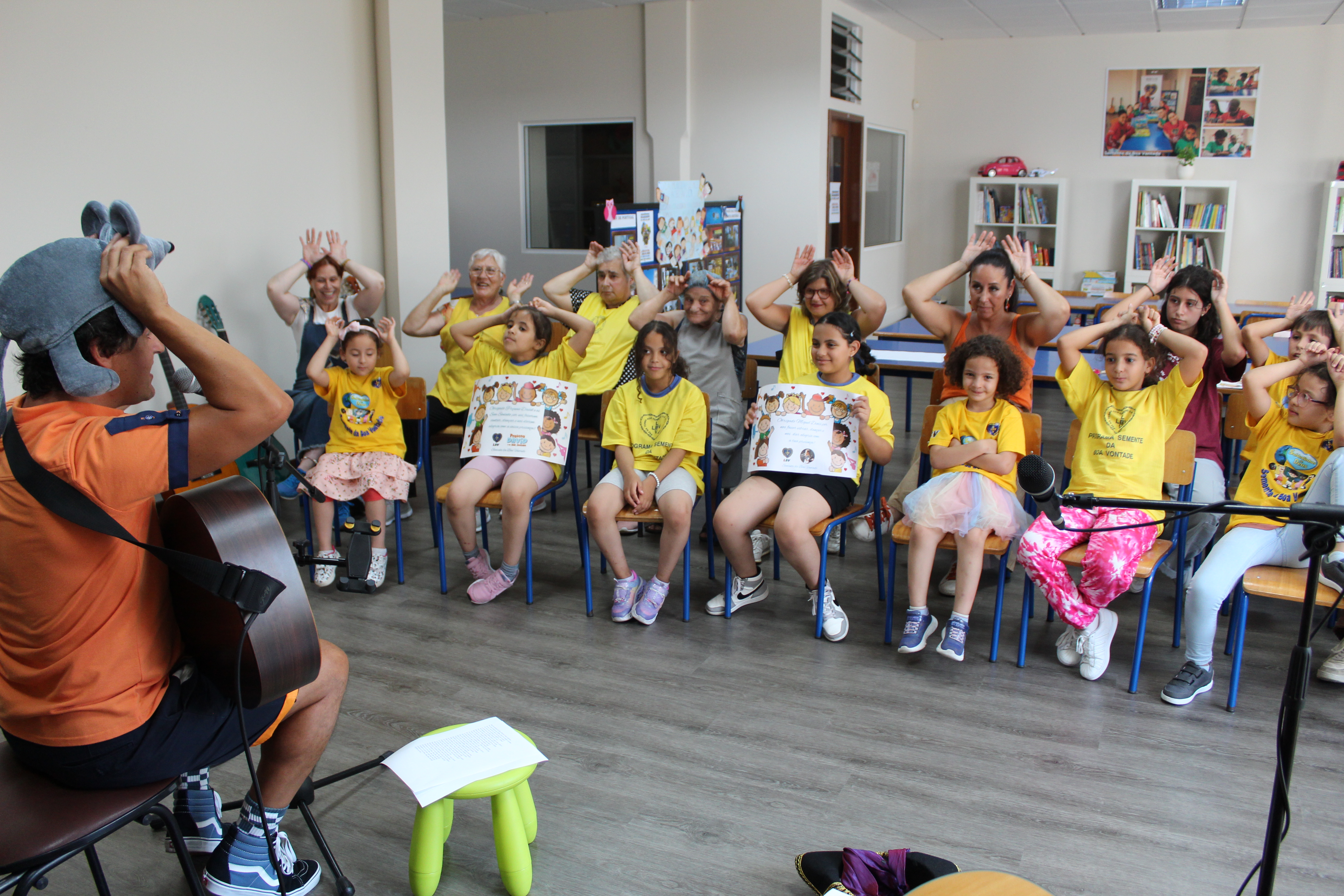 A tarde de 25 de julho foi de muita alegria no “Semente da Boa Vontade” com a presença de David da banda Pequeno David e os Sem Soninho e do músico Miguel Dinis, os quais cantaram e encantaram miúdos e graúdos!