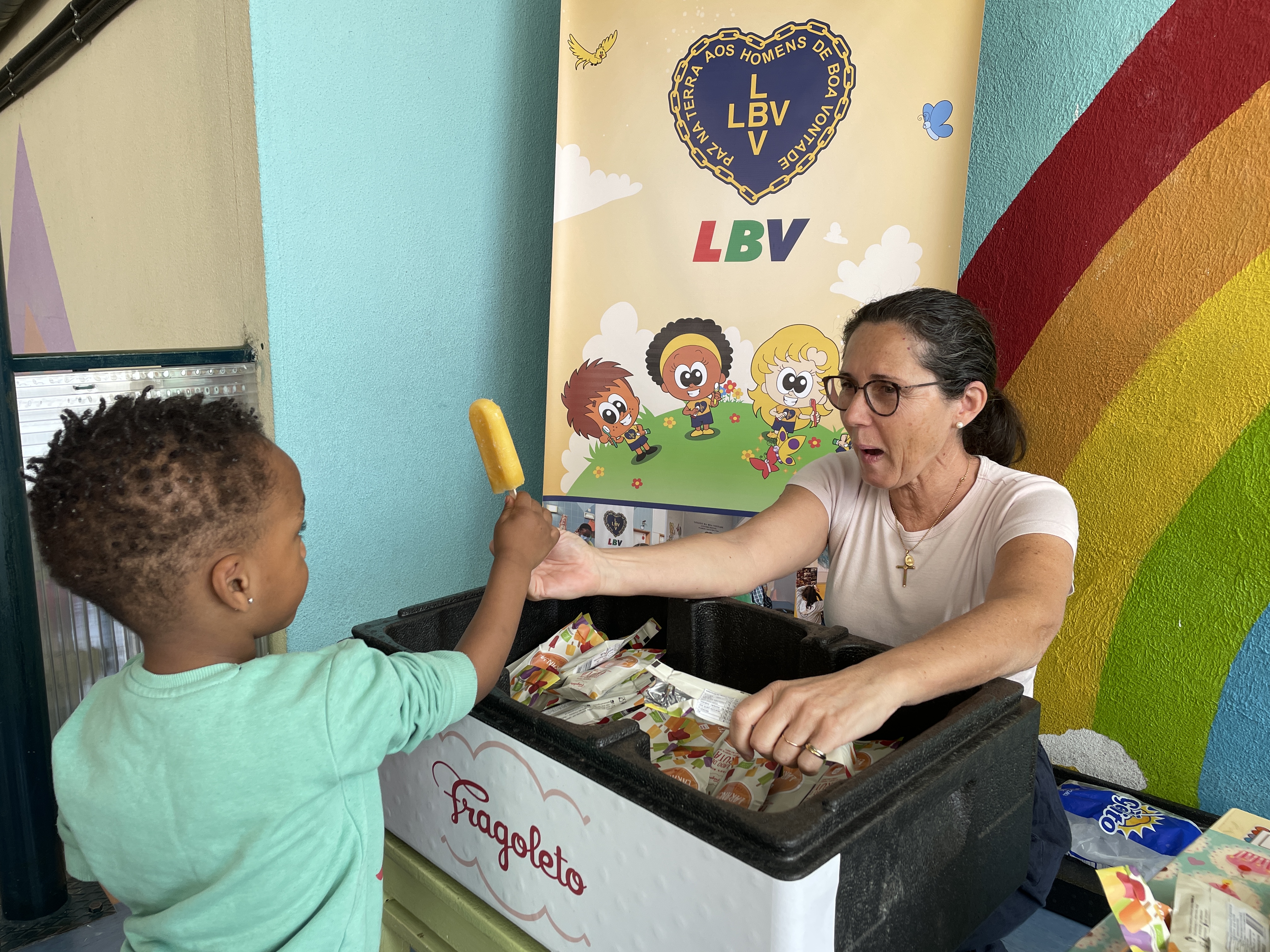 Foram momentos de alegria que contaram com a entrega de kits de higiene oral e com a colaboração da Gelataria FRAGOLETO, que deu gelados a todos.