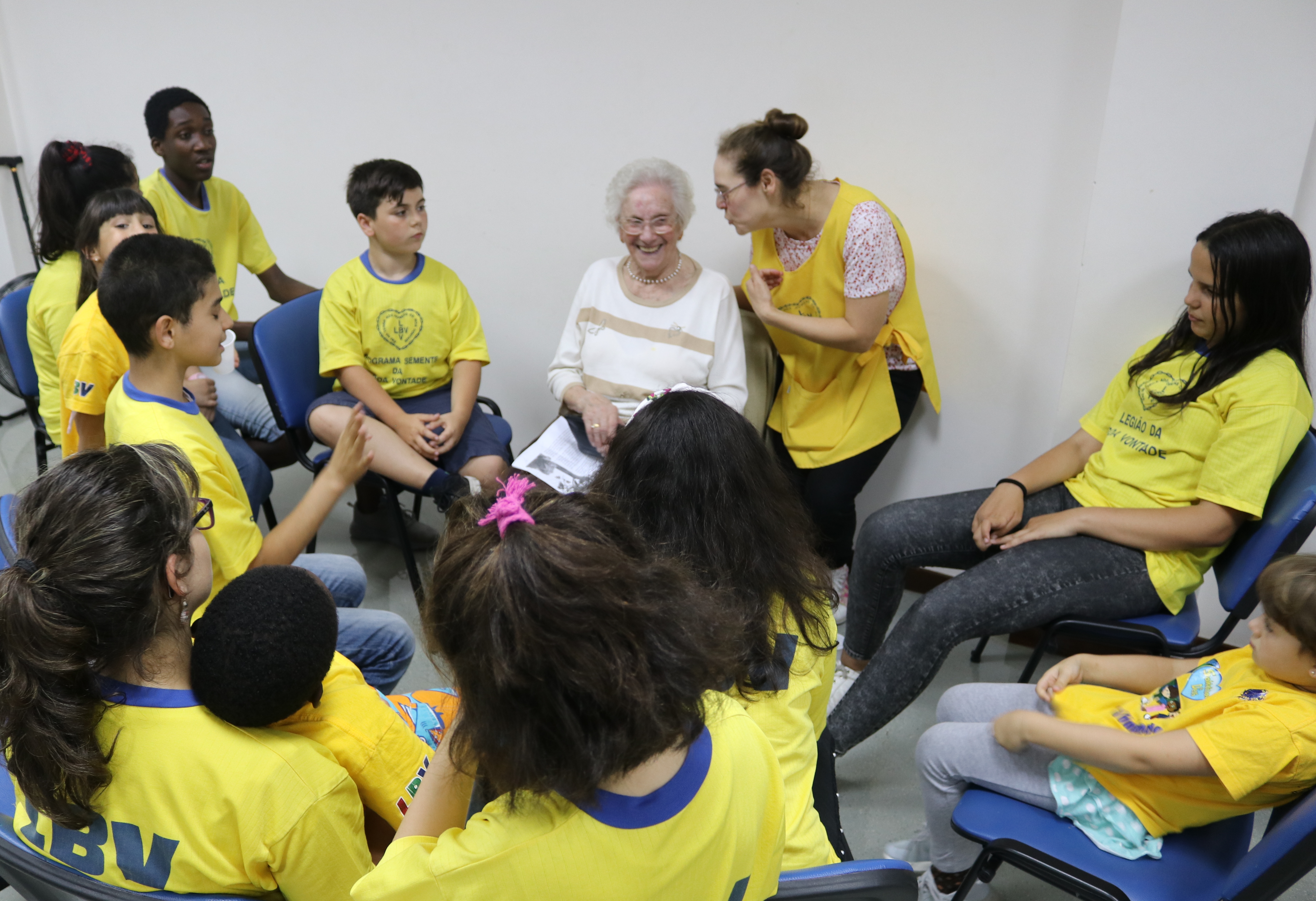 Os seniores foram recebidos com alegria pelas crianças e jovens que participam no Programa Semente da Boa Vontade, da LBV. Partilharam histórias, sentimentos e emoções das suas vivências perante a atenção e questionamentos dos mais jovens.