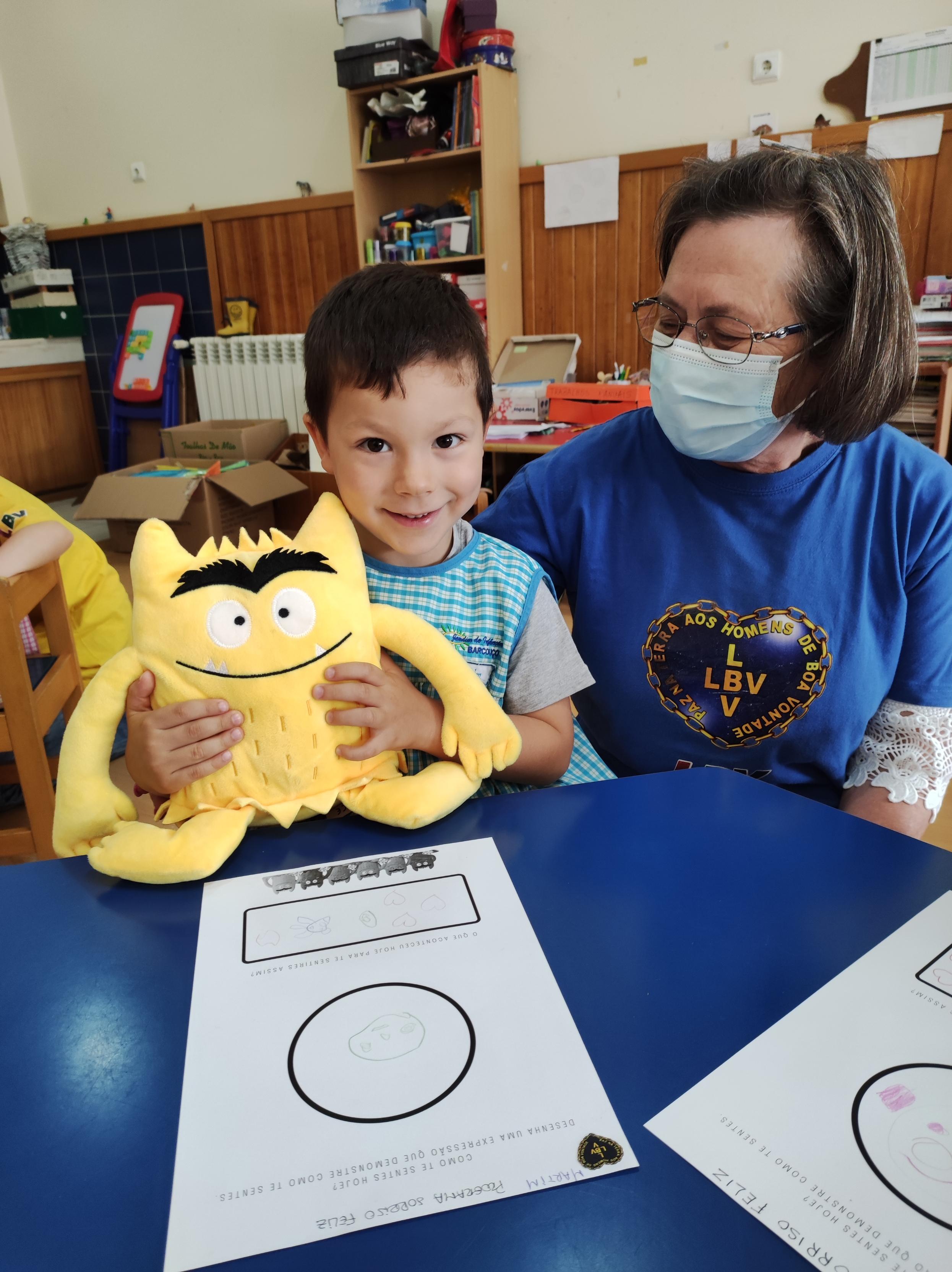 Após a história do “Monstro das Emoções”, as crianças realizaram uma atividade acerca do tema e assistiram a uma música em vídeo.