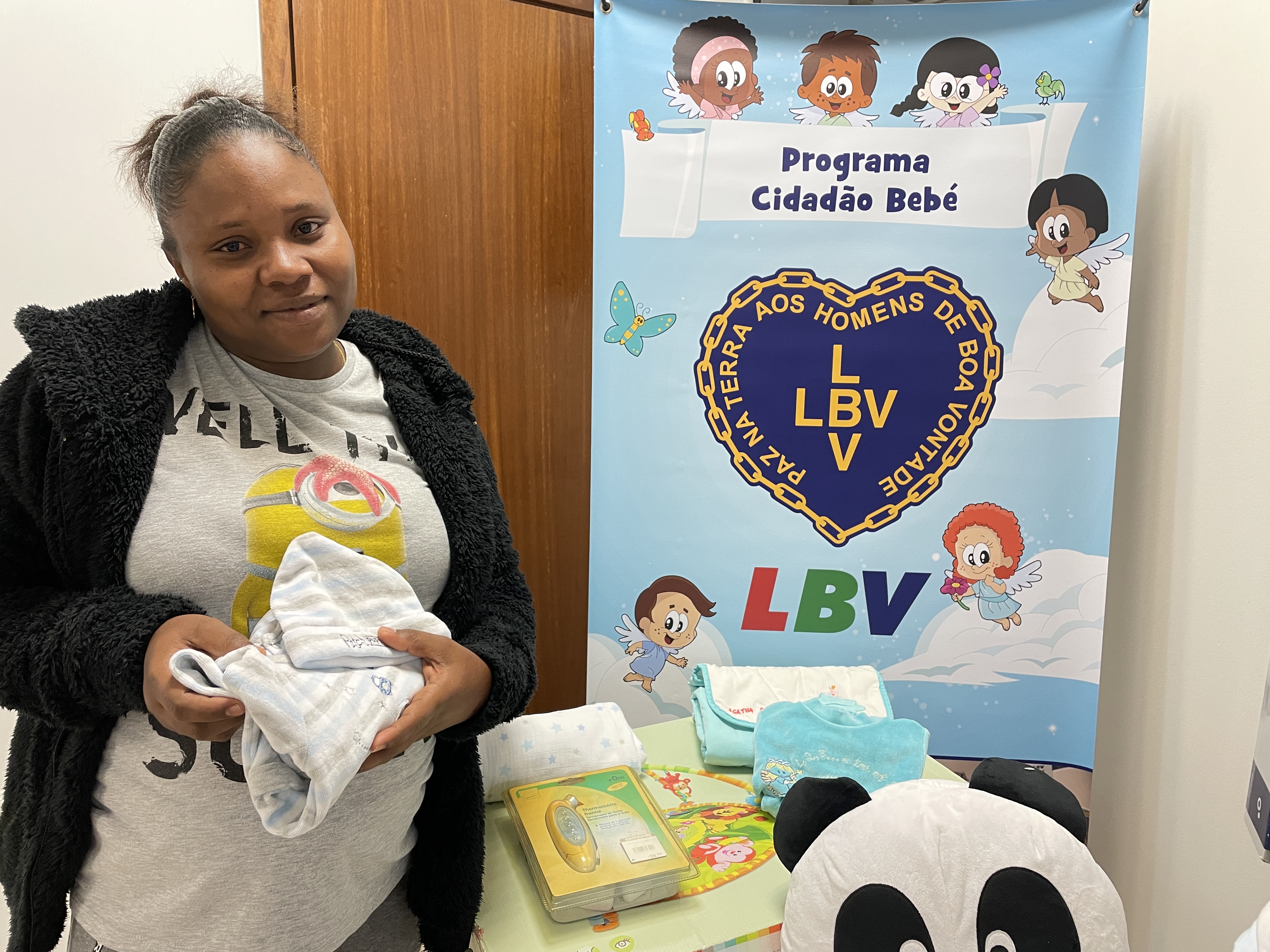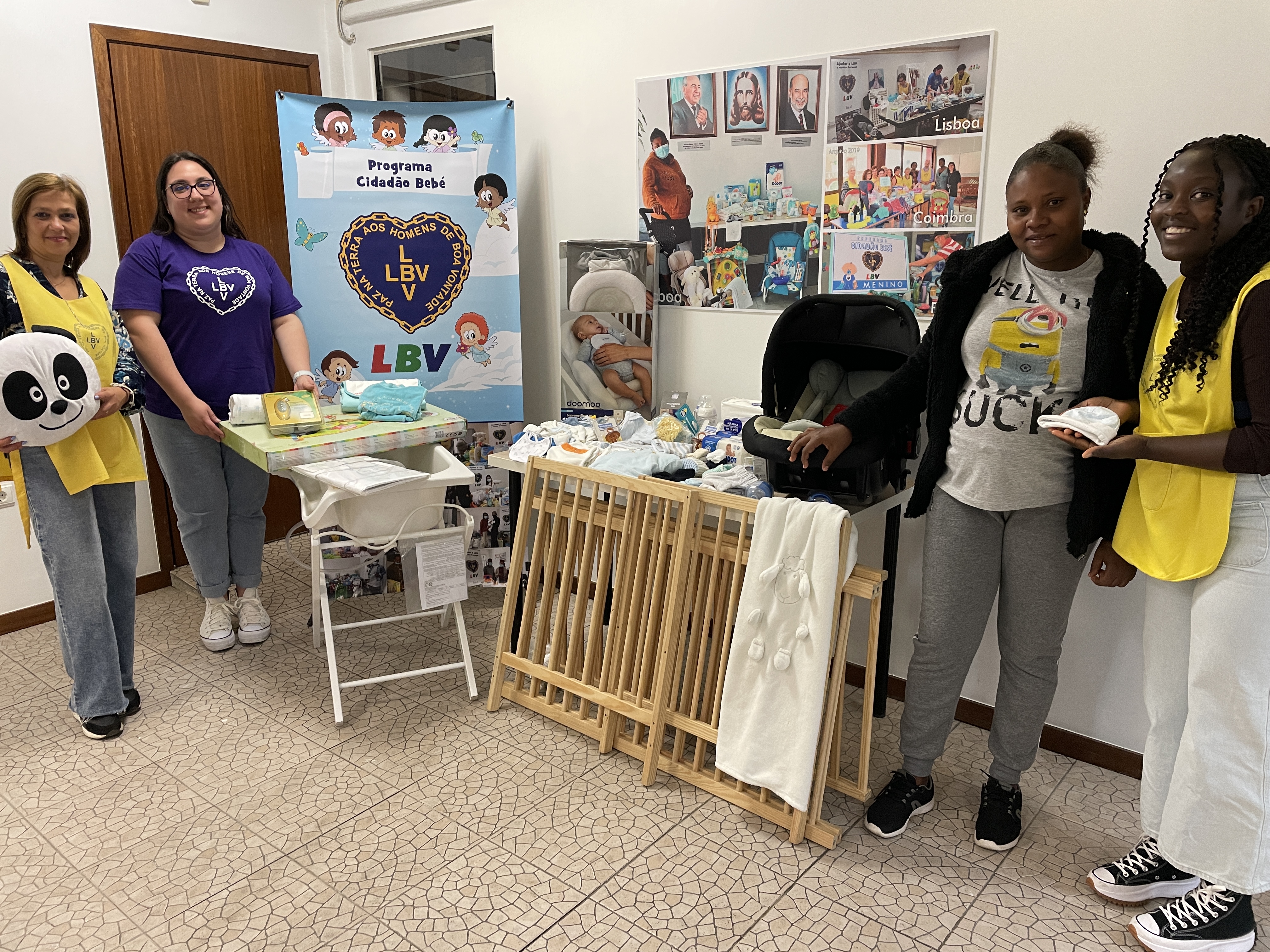 A LBV teve a honra de presentar com produtos de higiene, vestuário, roupas de cama, biberões, chuchas, brinquedos, ovo, carrinho, berço, entre outras coisas necessárias para o conforto do bebé, bem como da gestante.
