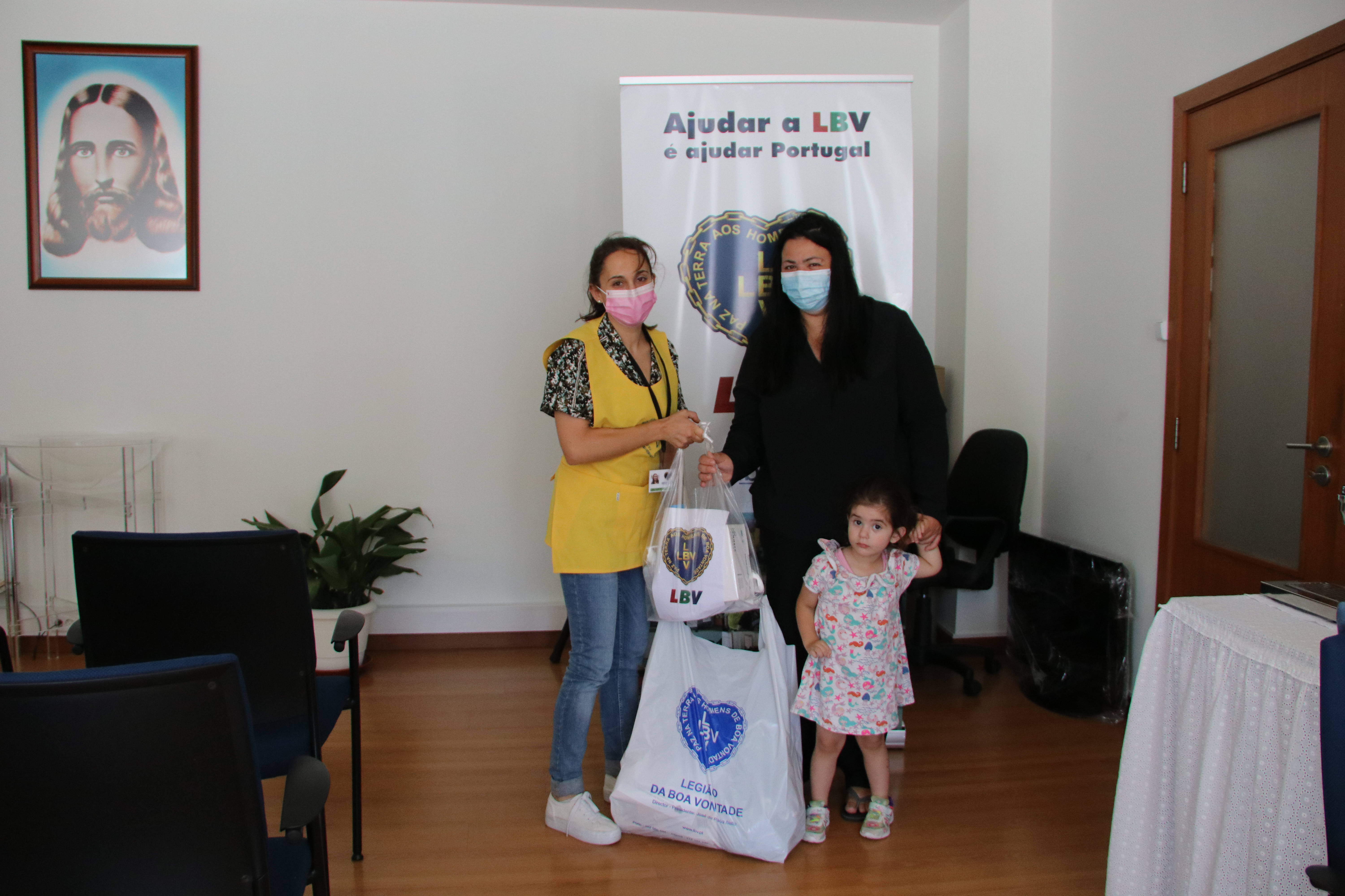 Este mês são 305 as famílias que estão a receber nas instalações do Centro Social da Legião da Boa Vontade nas cidades de Coimbra, Lisboa e Porto o cabaz com alimentos e produtos de higiene (caixa com máscaras, gel de banho, álcool gel, lixívia), para promover e facilitar a higienização nas suas habitações, a fim de proteger a saúde de todos os membros das famílias abrangidas.