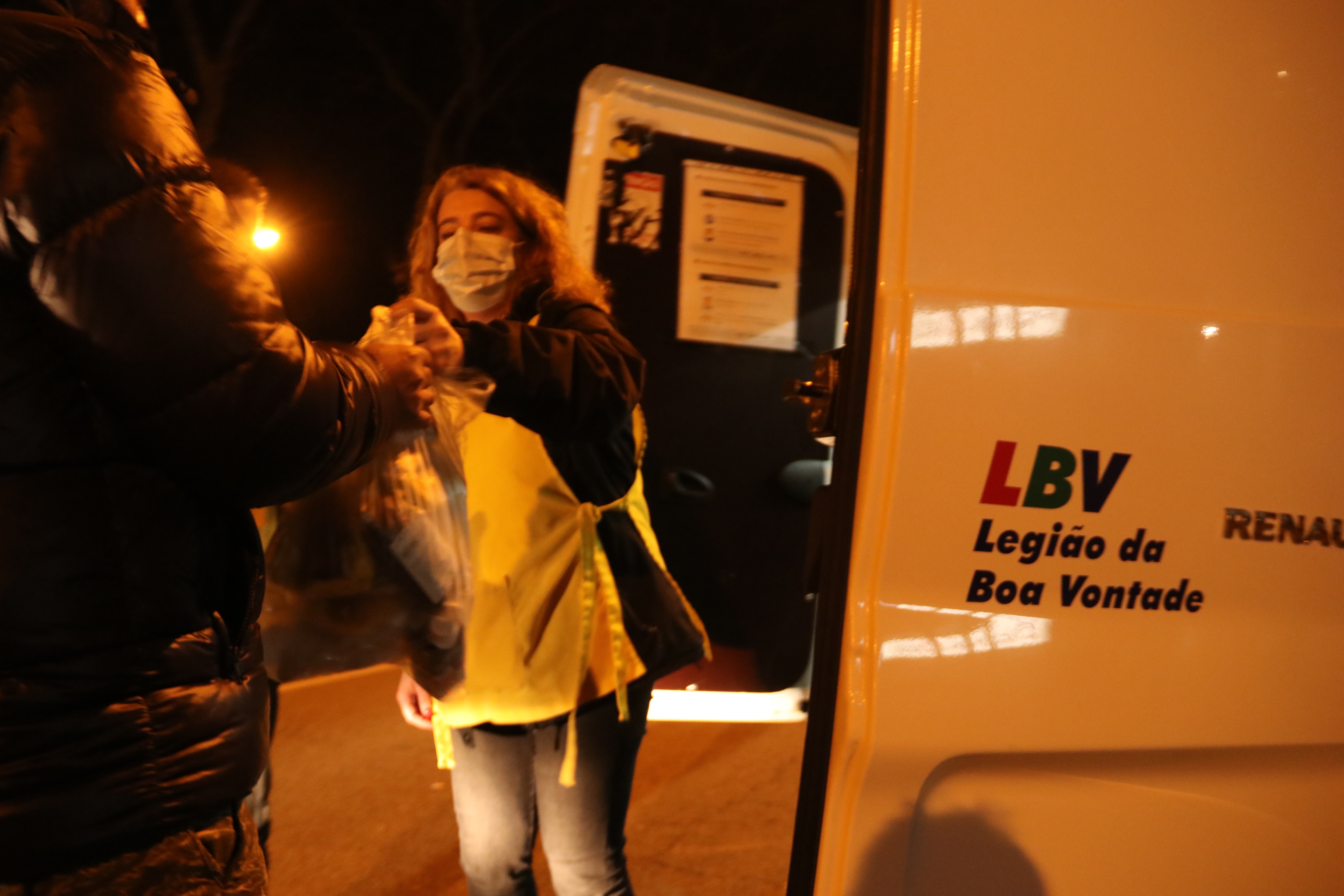 Os voluntários da LBV, já conhecidos pelos voluntários do “colete amarelo”, fazem a entrega do que transportam, dirigem a atenção à pessoa, prestando informações e solicitando para que se dirija ao Centro Social da LBV, durante o dia, para com a orientação de profissional poder ter um acompanhamento que permita vir a melhorar a sua vida.