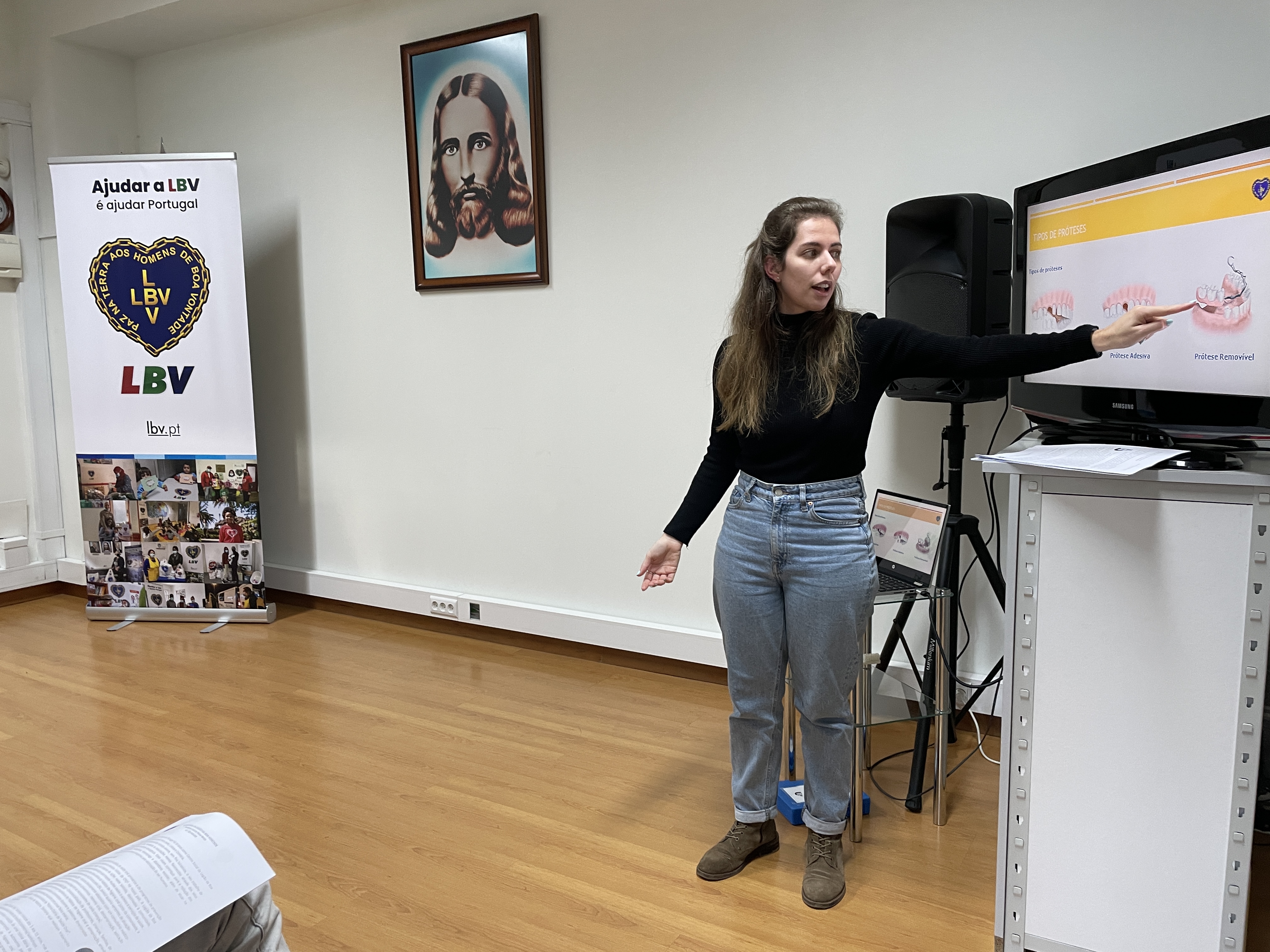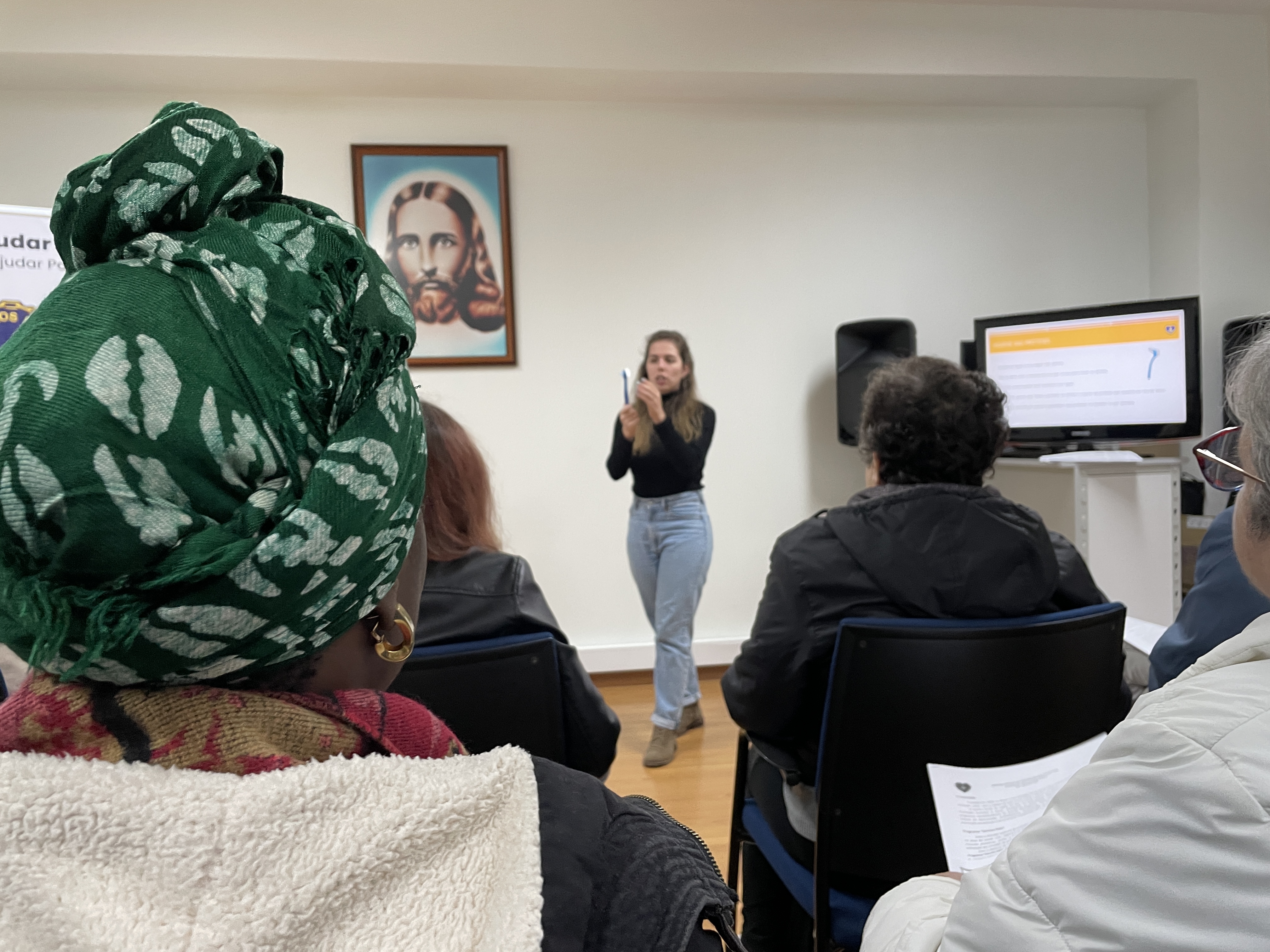 No dia 11 de janeiro, as famílias apoiadas pelo Programa Um Passo em Frente, na cidade de Coimbra, assistiram a uma sessão de sensibilização sobre saúde oral realizada pela higienista oral da LBV, Beatriz Queirós.