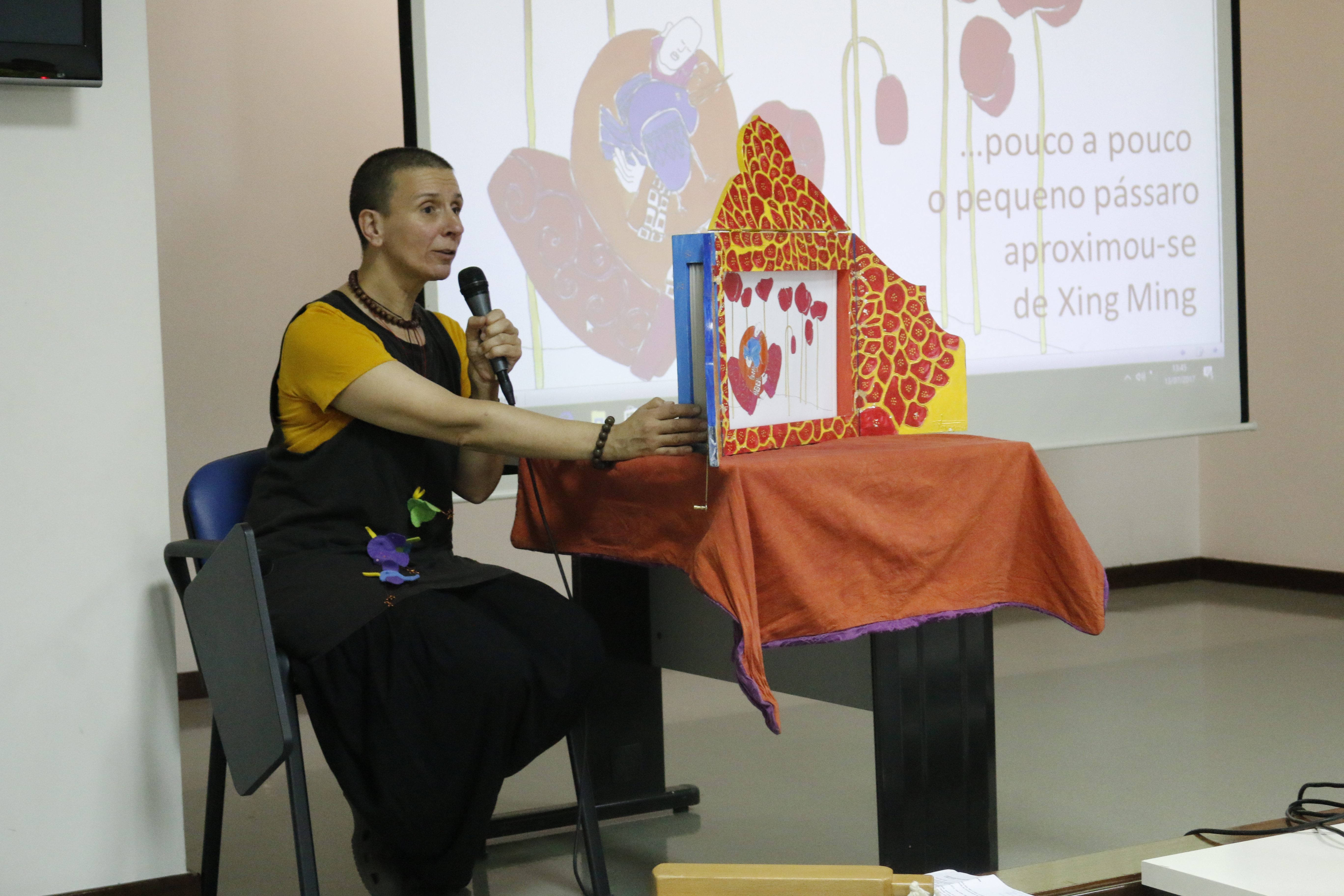 O livro que apresentou transmite, conforme refere a autora, os valores que aprendeu com a sua família, valores colocados em prática no seu dia-a-dia. “Os pássaros também se sentam” conta a história de uma amizade entre um pássaro e um pequeno monge, na qual, segundo a autora, é transmitida a importância do silêncio, da reflexão, da existência de uma comunicação mais interna, do ir ao encontro de nós próprios para nos podermos comunicar aos outros e ao mundo externo.