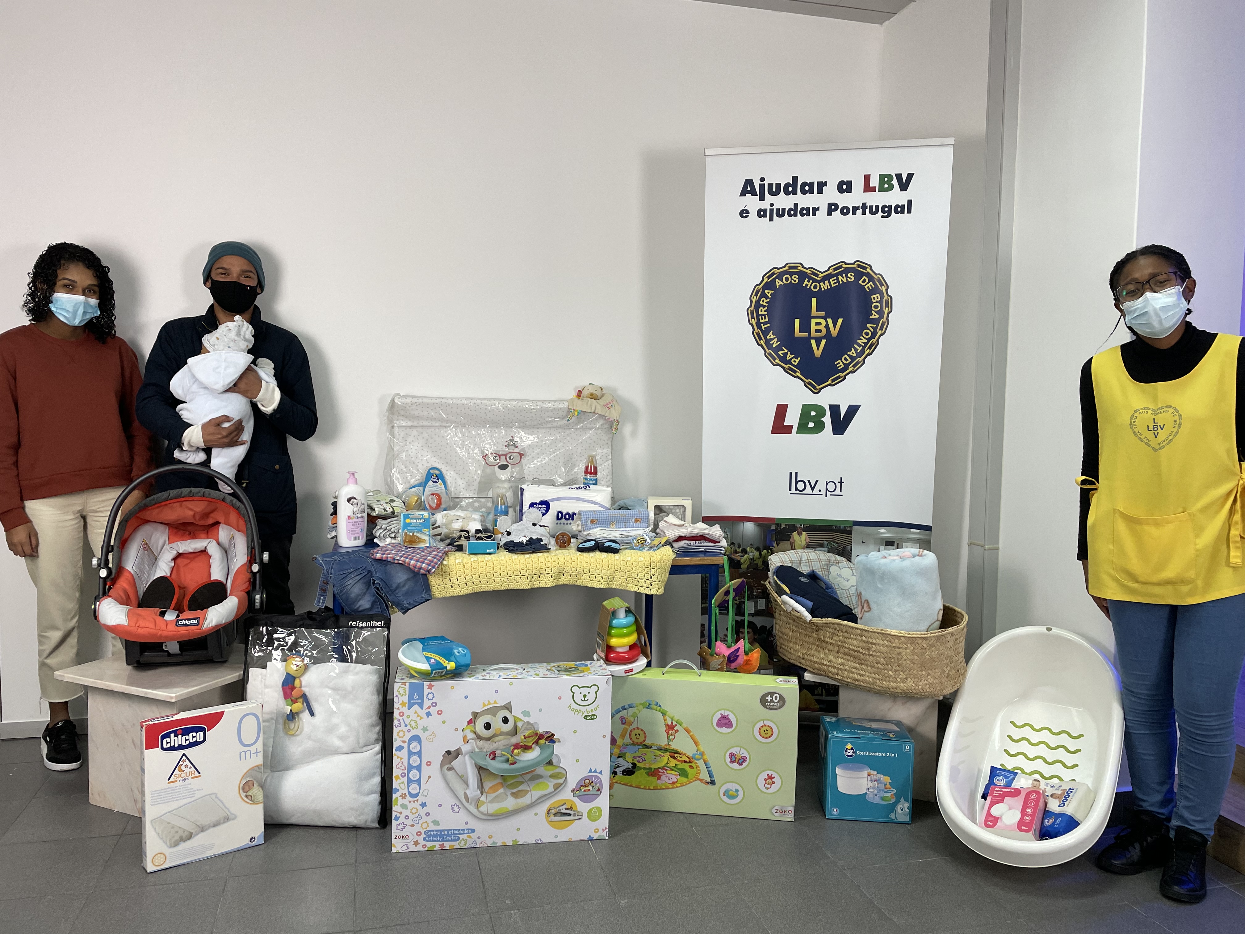 Os jovens foram pais no dia 28 de dezembro, dirigiram-se neste mês de janeiro à LBV para apresentarem um pedido de ajuda. Dadas as dificuldades, a equipa reuniu diversos artigos que vão colmatar as necessidades do bebé, desde produtos de higiene, artigos de puericultura, de transporte, vestuário, roupa de cama, etc.