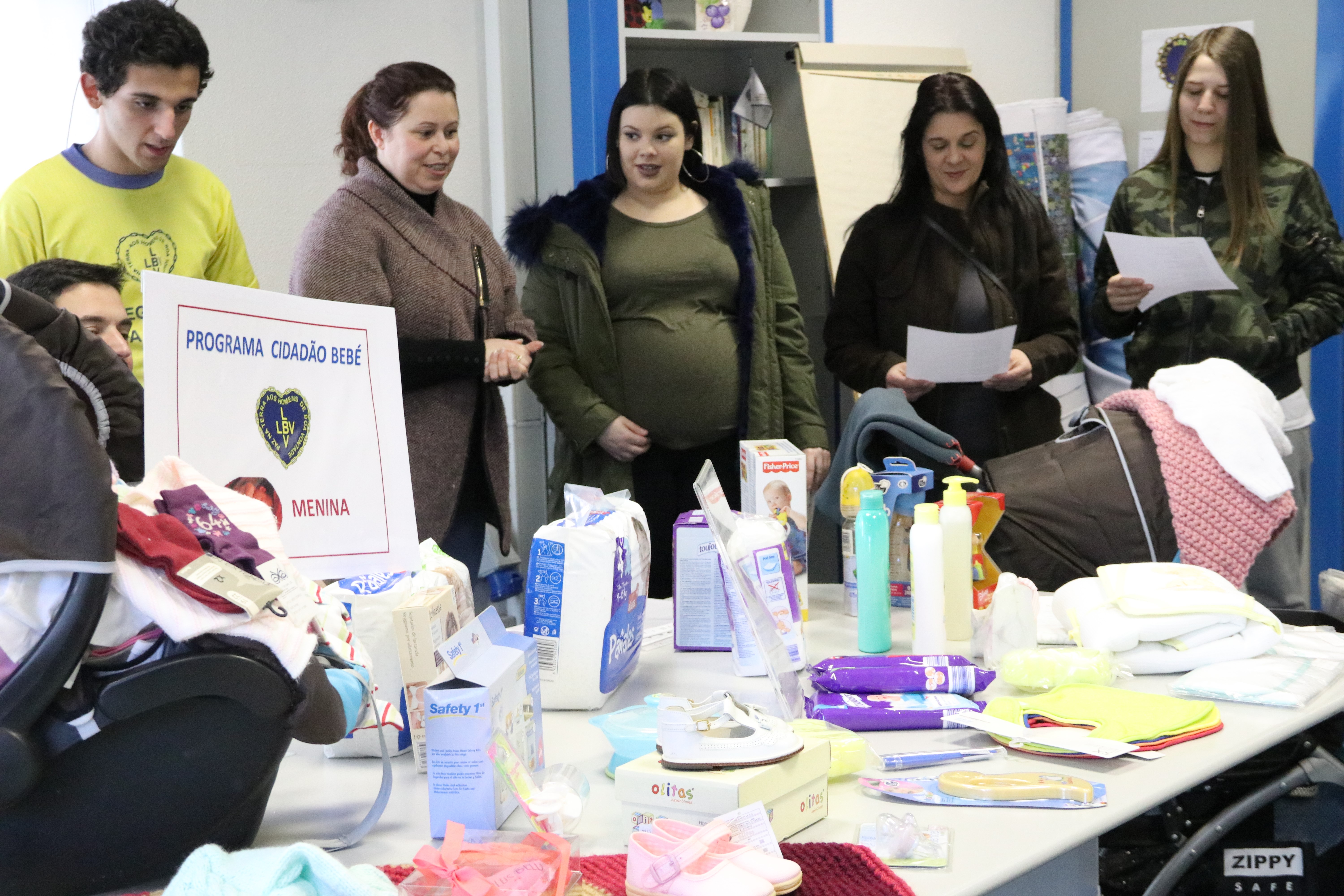 A Legião da Boa Vontade na cidade do Porto através do seu Programa Cidadão Bebé – realizou a entrega de um enxoval, no passado dia 30 de janeiro, para a mãe, Márcia Eduarda Fernandes, que se encontra com sete meses de gestação de uma menina, que se irá chamar Inês! Este projeto da Legião da Boa Vontade apoia famílias em situação de vulnerabilidade económica, com enxovais de artigos de puericultura e com apoio alimentar mensal, durante os primeiros doze meses do bebé. Márcia Eduarda estava acompanhada pela sua mãe, D. Vera Moreira e pela sua amiga Renata e futura madrinha da bebé Inês! Felizes, agradeceram à Legião da Boa Vontade a ajuda tão necessária – um enxoval composto por artigos de puericultura: o carrinho, o ovo, soutiens de amamentação, o saco (para a mãe), os biberões de leite e água, os pratos para a papa (com base aderente), as chupetas, porta-chupetas, termómetros (água do banho), artigos de segurança (bloqueadores de portas, janelas, gavetas, tomadas…), fraldas e toalhitas, mantinhas, cobertores, lençóis (alcofa), esponjas de banho, artigos de higiene (gel e shampoo para o banho, loção hidratante), brinquedos para recém-nascido e variadas peças de roupa: sapatinhos, casacos, gorros, luvas e cachecóis de lã, feitos à mão pelo voluntariado sénior do Programa Viva Mais! da LBV. Jovens do Programa Juventude Ecuménica da Boa Vontade, acompanharam a entrega do enxoval e alegremente cantaram e tocaram músicas populares portuguesas, para dar as boas vindas ao novo “cidadão bebé” Inês! A LBV deseja muita saúde e felicidades para a família da bebé “Inês”!
