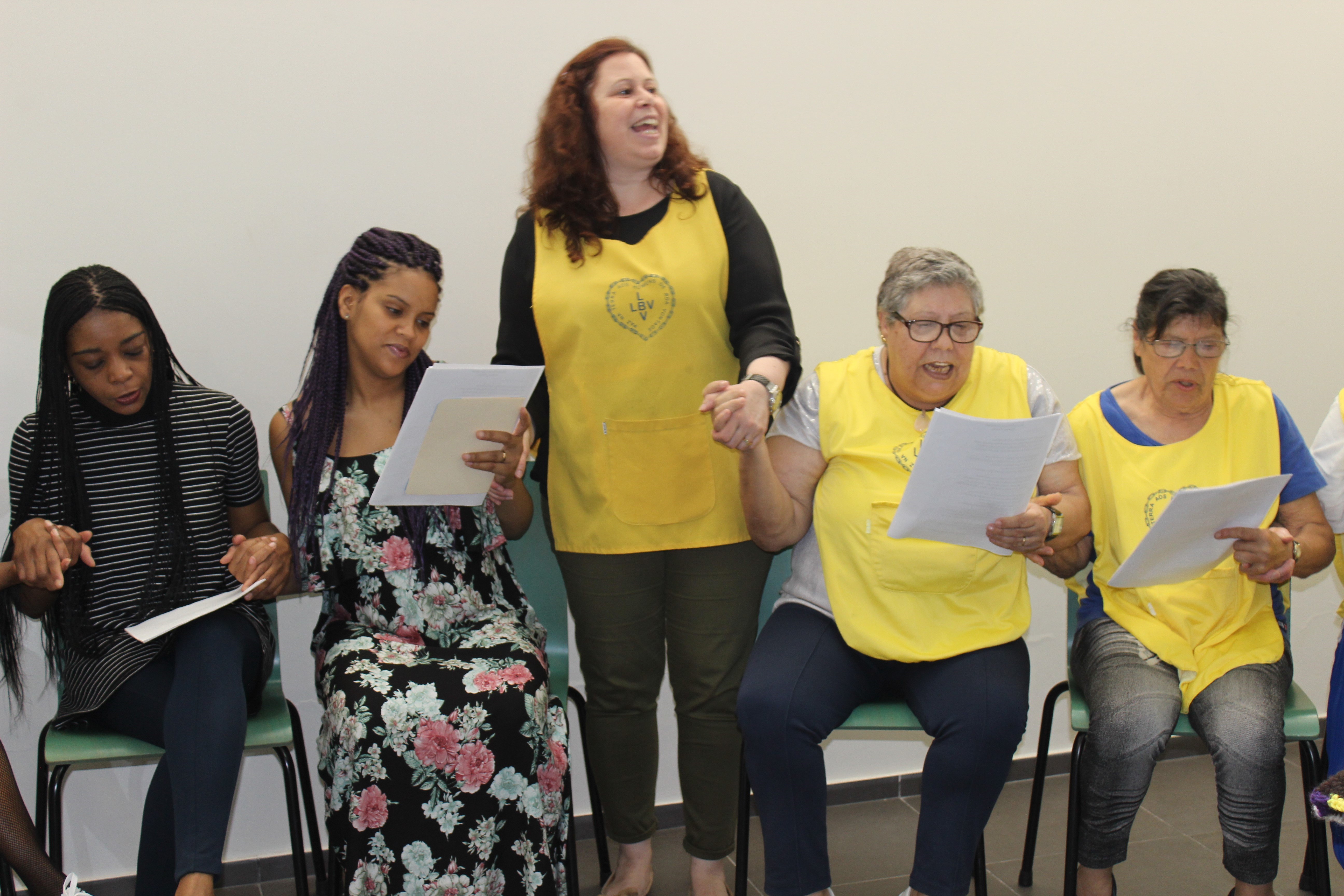 As voluntárias e os jovens do Programa Juventude Ecuménica da Boa Vontade participaram na entrega do enxoval e juntos, em ambiente de alegria, cantarolaram músicas tradicionais portuguesas, para dar as boas vindas ao novo “cidadão bebé” Diogo!