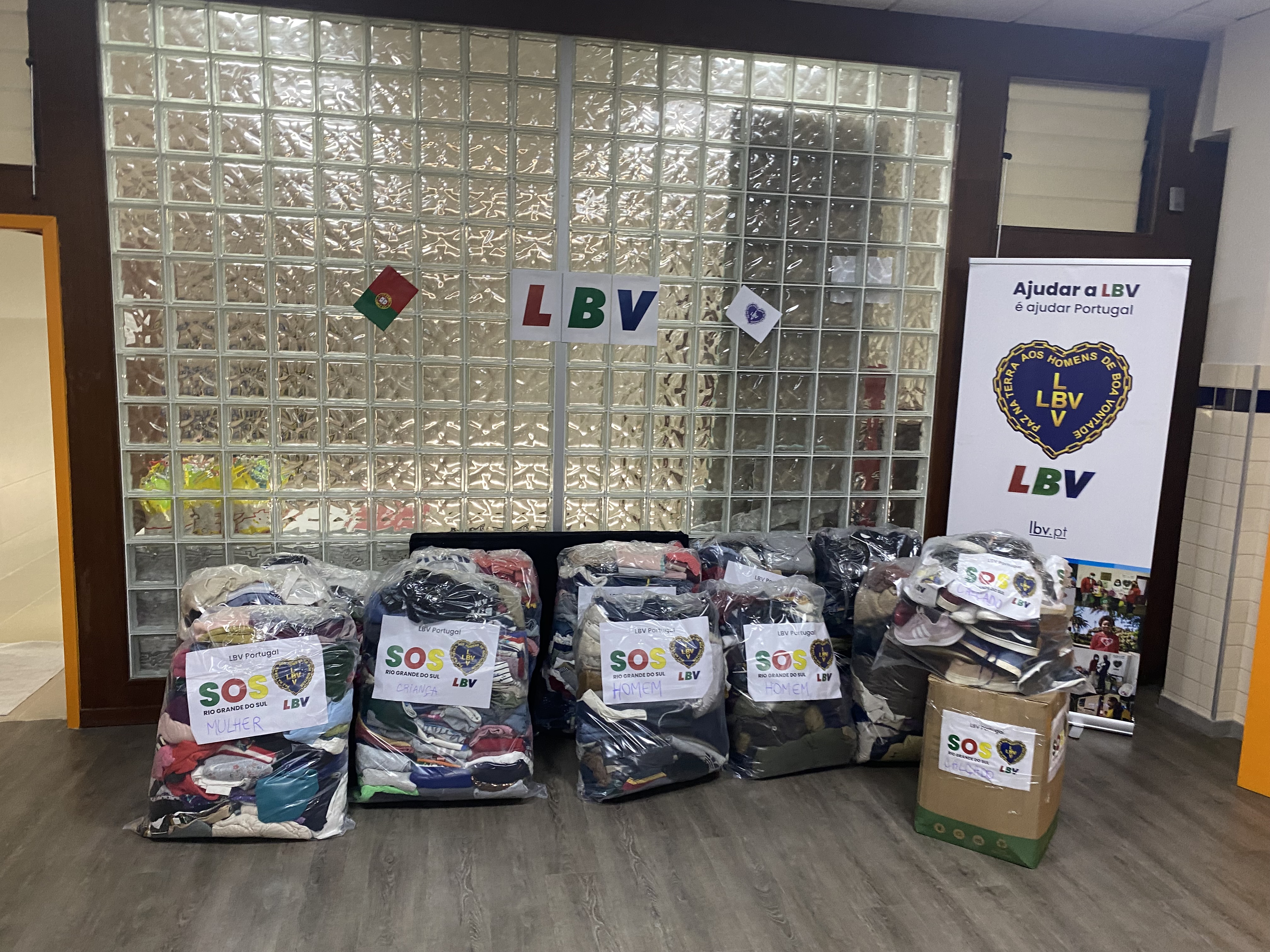 A Legião da Boa Vontade entregou doações de roupas de criança, mulher e homem, artigos de higiene, fraldas, entre outros itens, para colaborar no apelo solidário que foi iniciado por grupos de voluntários, em várias cidades de Portugal, no apoio à população do Rio Grande do Sul.