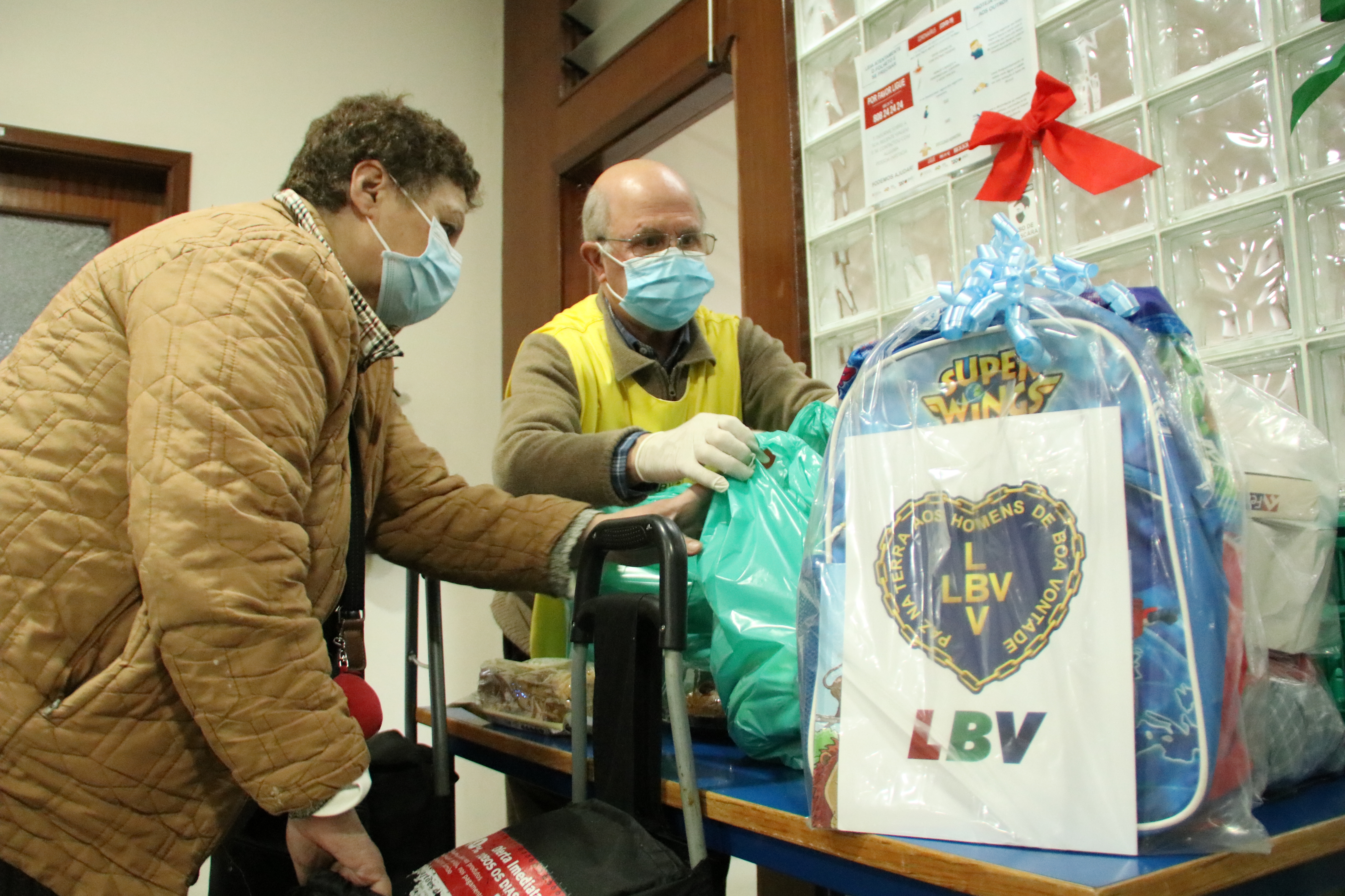A LBV tem estado, desde o dia 2 de dezembro, a realizar a entrega de alimentos, kits de higiene e prendas a famílias e suas crianças.