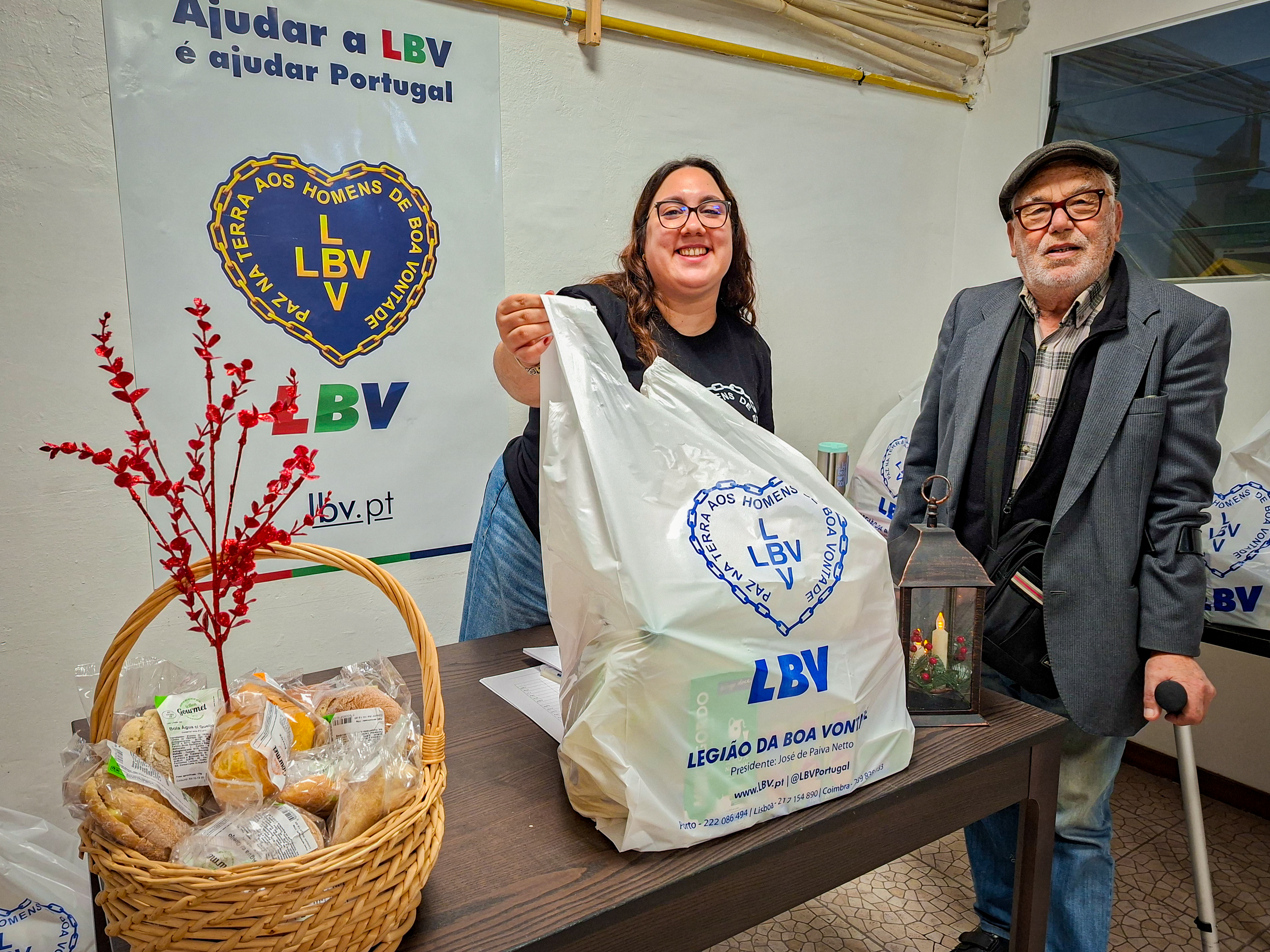 A entrega de cabazes de alimentos a 600 famílias está a decorrer nas instalações da LBV de Lisboa e Porto até a semana que vem, dia 11 esteve em Braga, no auditório da União de Freguesias de Maximinos, Sé e Cividade e estará em Coimbra no IPDJ, pelas 13h00, de 18 de dezembro, para atender as famílias desta cidade que, durante o ano, recebem o apoio da LBV.