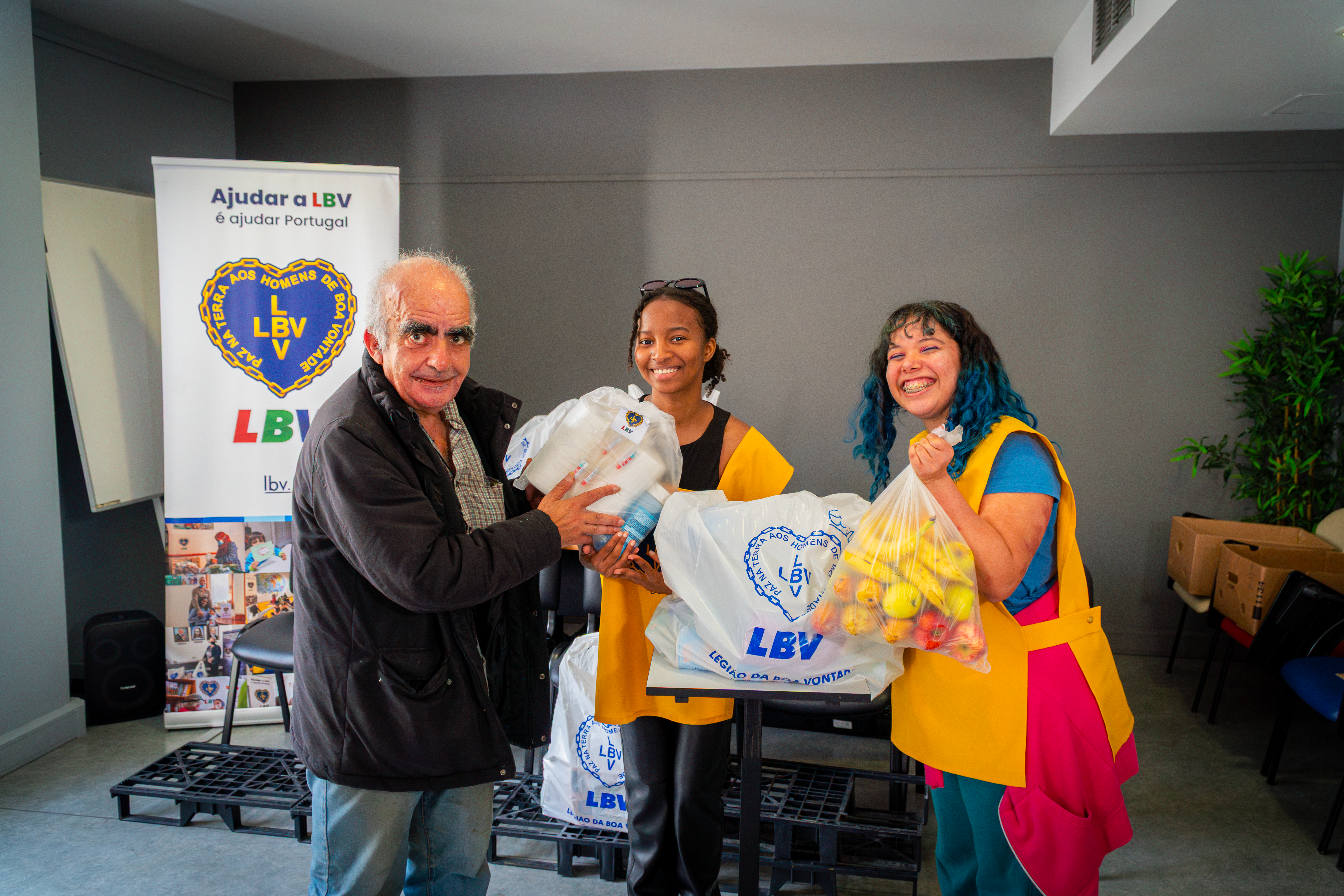 As famílias estiveram reunidas no IPDJ desta cidade, onde foram acolhidas pela equipa da LBV com uma mensagem de Páscoa a dar a ajuda que tanto precisam e que neste momento do mês e altura do ano aliviam as preocupações com o que há de alimentação em casa.