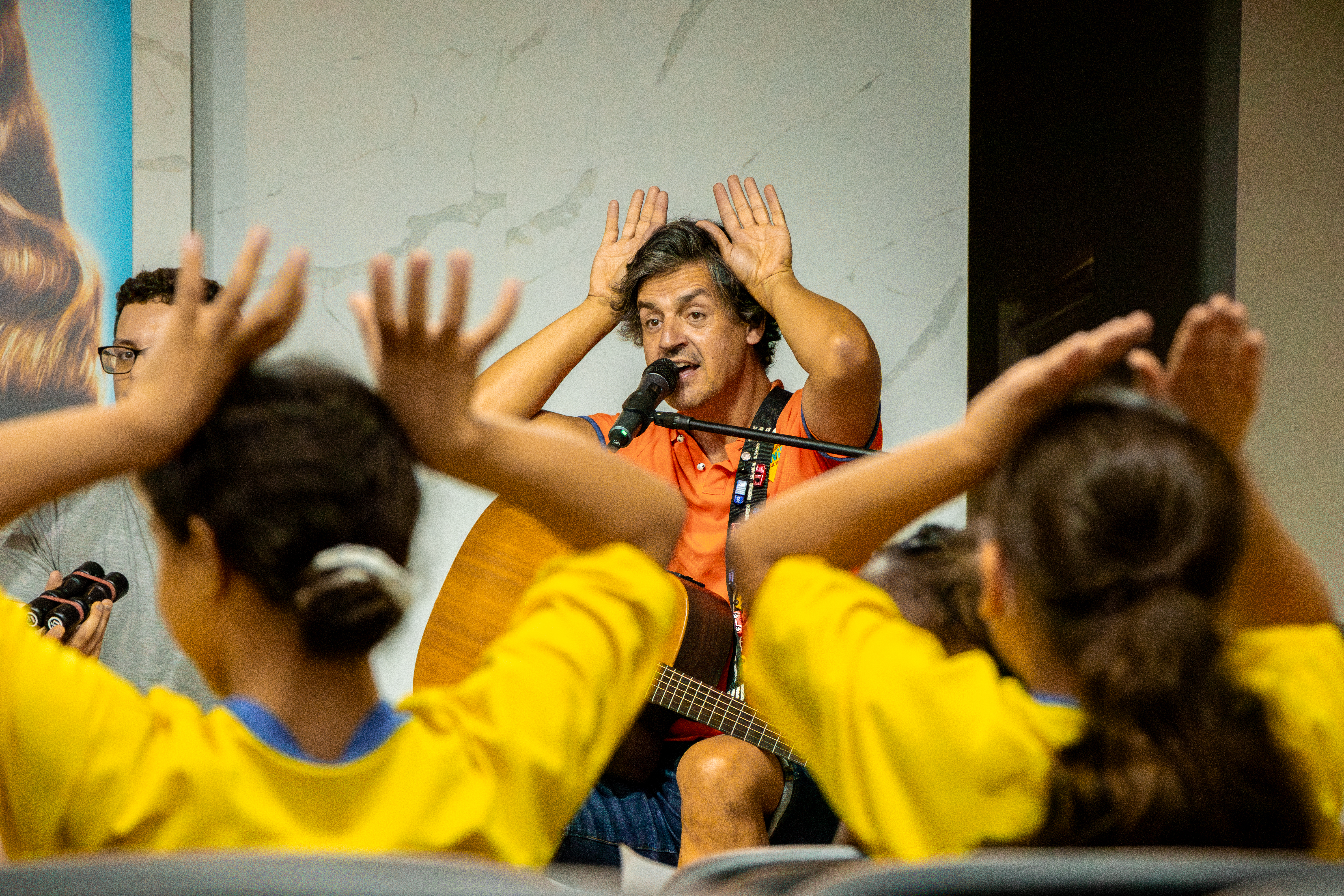 As crianças cantaram e dançaram ao ritmo das músicas num ambiente feliz.