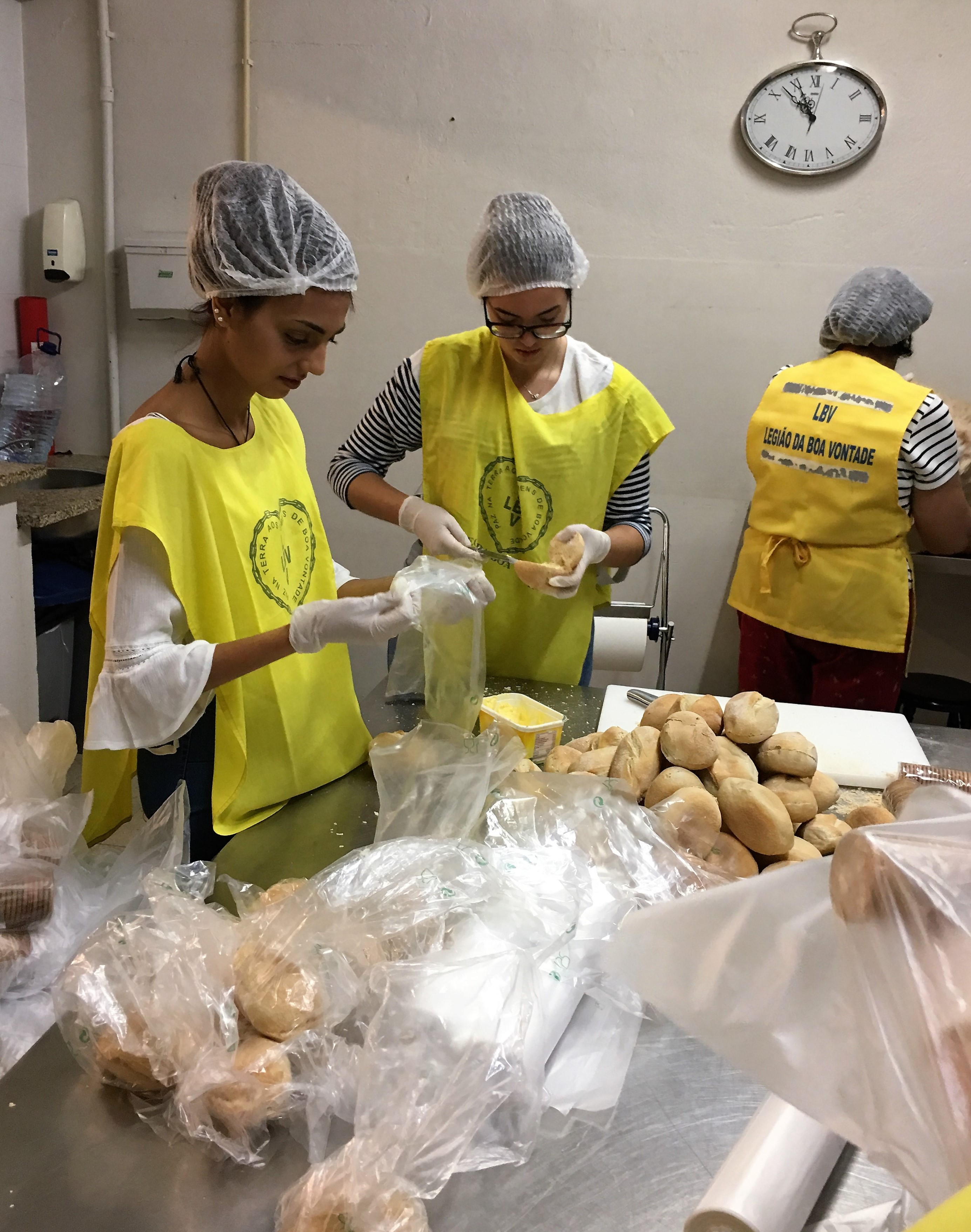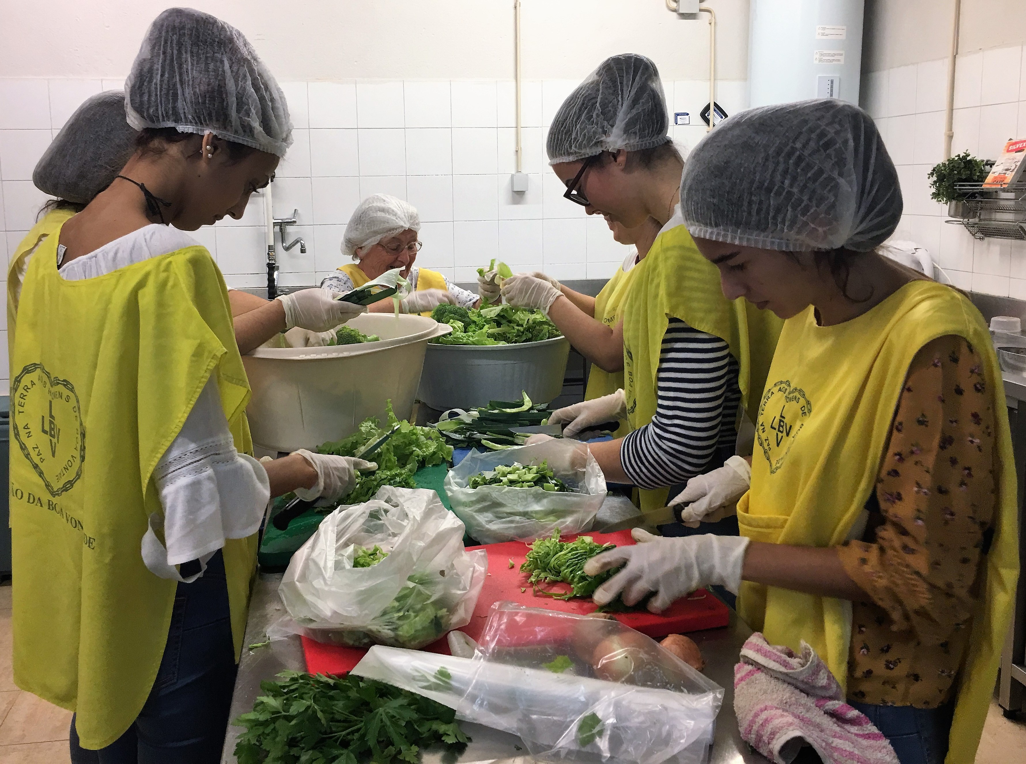 A manhã do dia 30 de outubro foi passada nas instalações do Centro Social da LBV de Lisboa, onde lhes foi preparada uma verdadeira “Praxe Solidária”. À espera destes jovens estava um grupo de voluntários do Programa Viva Mais!, com os quais passaram várias horas a preparar todos os alimentos que seriam servidos à noite, à população sem abrigo, utente do Programa Ronda da Caridade.