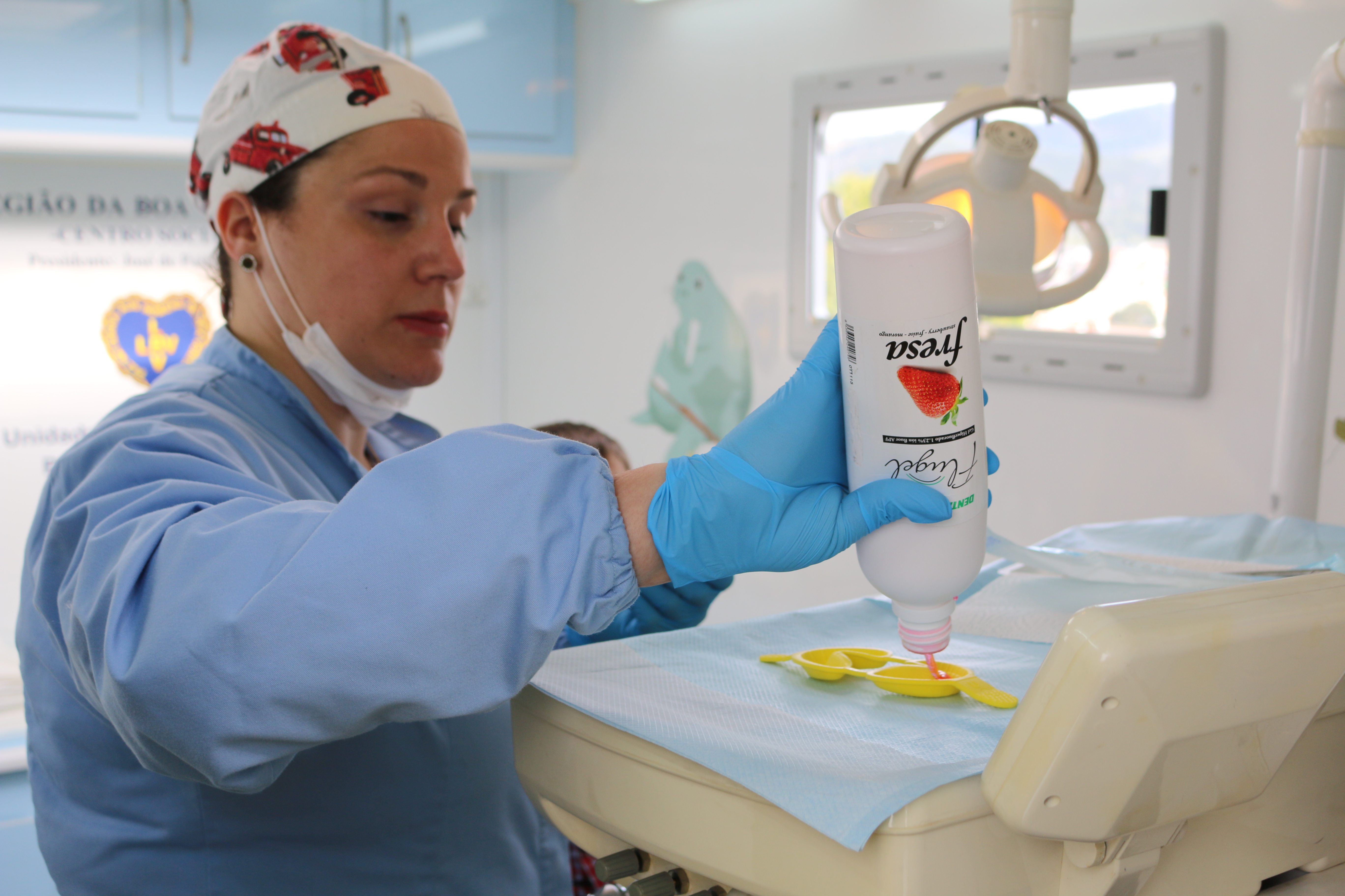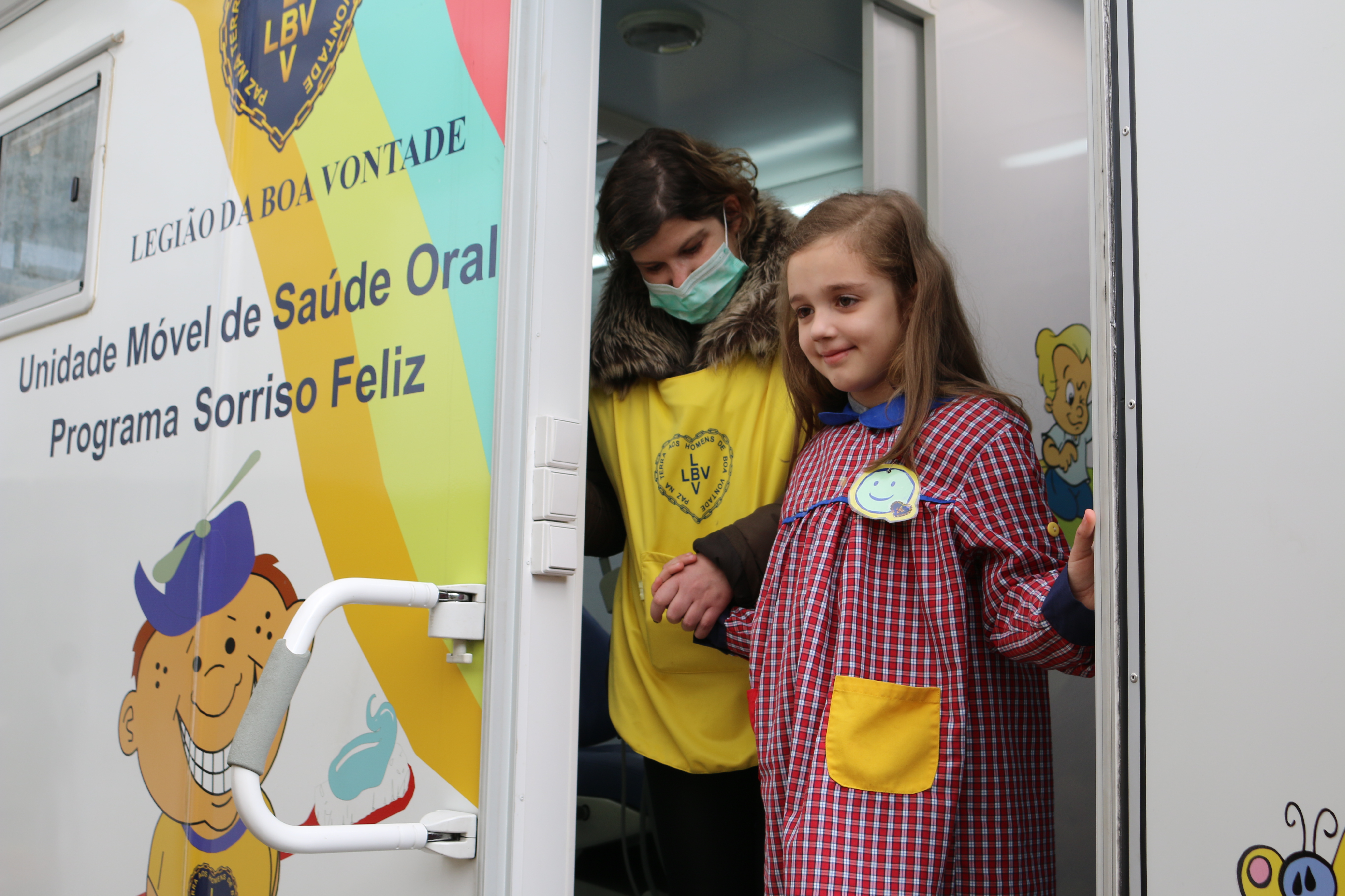 Após a realização de uma correta escovagem dos dentinhos, as crianças estiveram na “carrinha mágica”, Unidade Móvel de Saúde Oral da LBV que permite fazer uma observação da boca da criança e onde hoje foi realizada a aplicação tópica de flúor, para fortalecer os dentinhos destes pequenos. A aplicação realizada é desenvolvida de 6 em 6 meses e requer a autorização dos respetivos tutores das crianças.