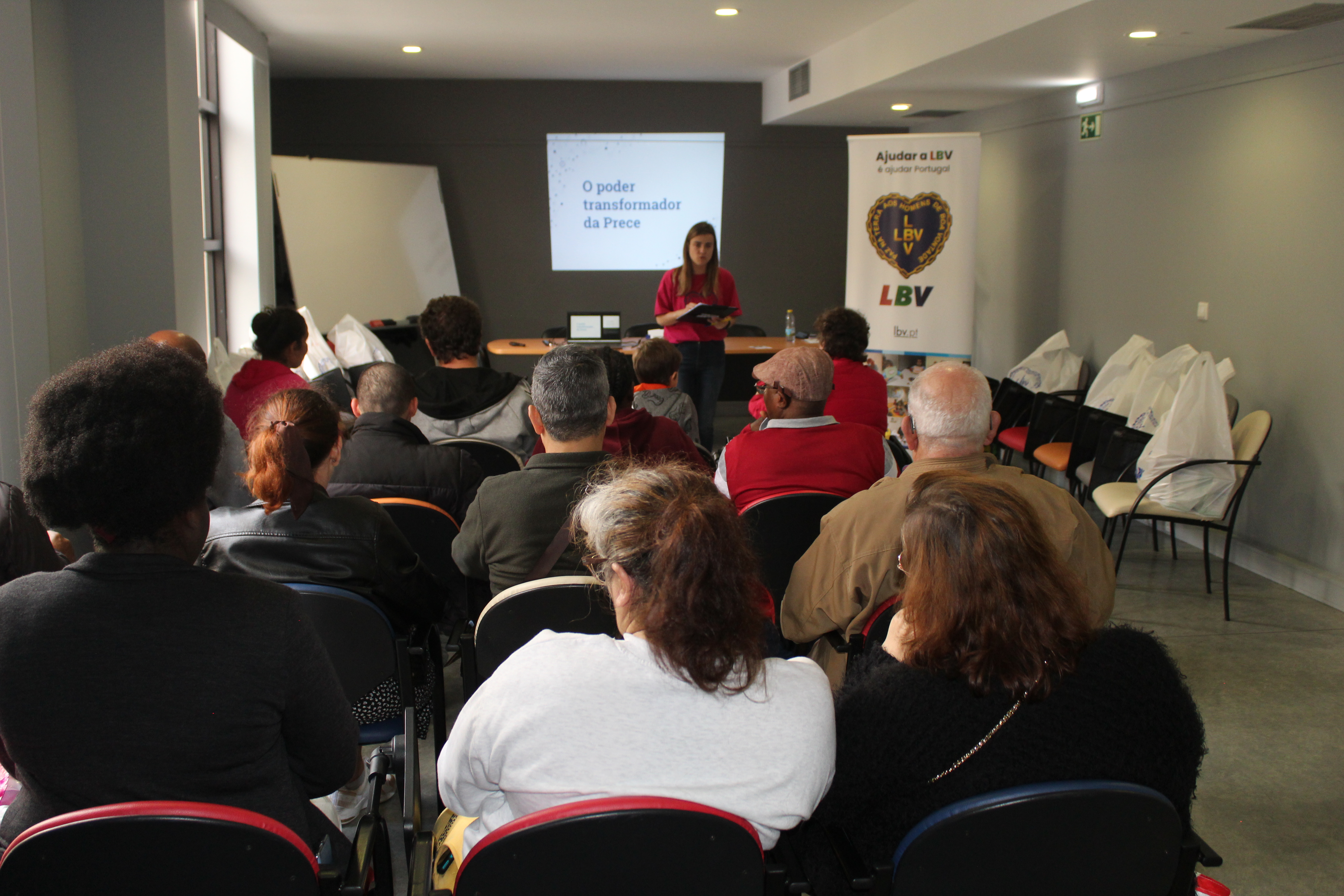 Antes da entrega dos alimentos, as famílias assistiram à palestra “O poder transformador da prece”, sendo transmitido os benefícios de termos tempo para respirar, parar um pouco no nosso dia a dia em que vivemos tantas emoções e o facto de fazer prece ou simplesmente envolver-se com as boas energias, ideologias, em que cada um acredita, faz a diferença na capacidade de resiliência que cada um de nós tem perante todas as situações vivenciadas.