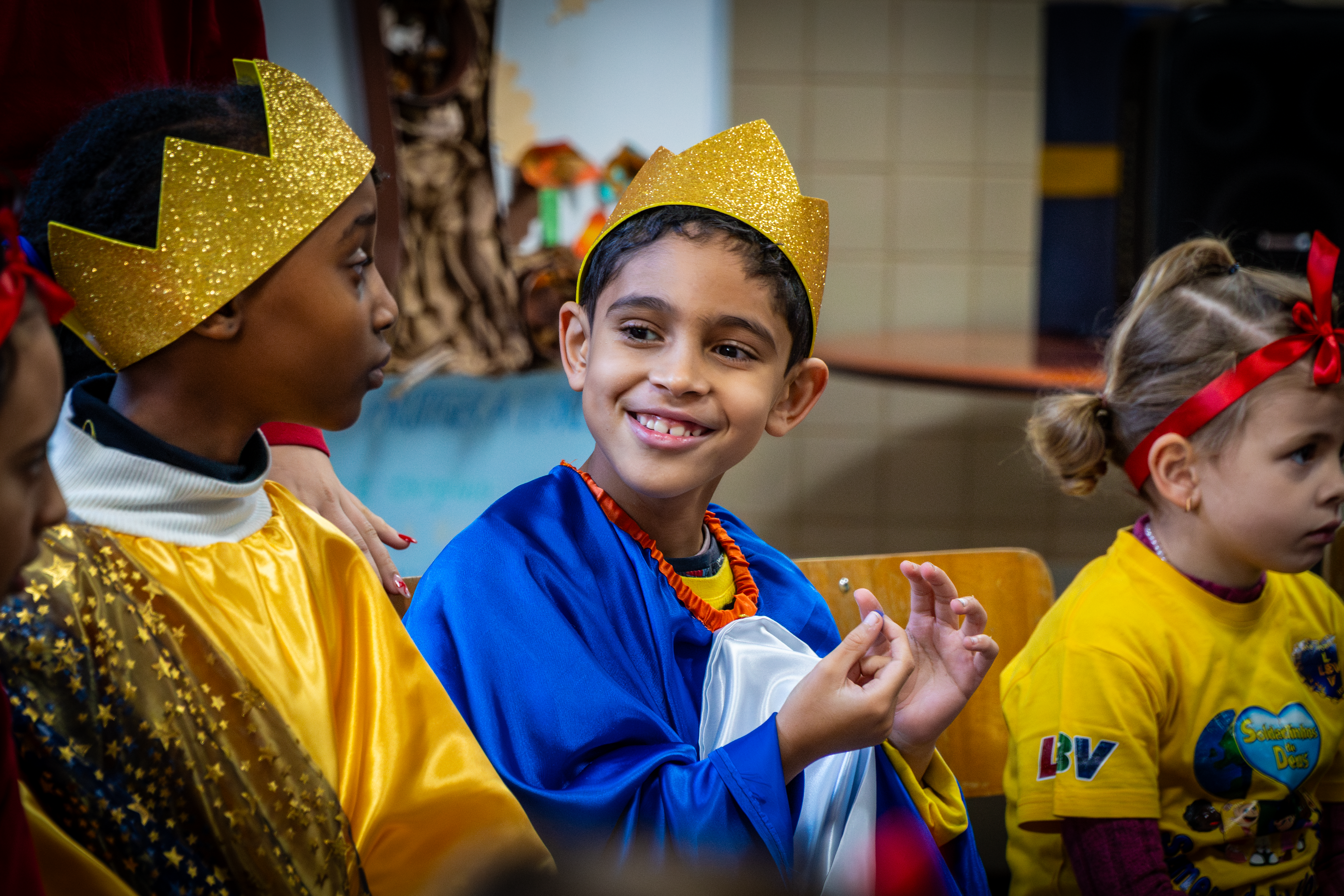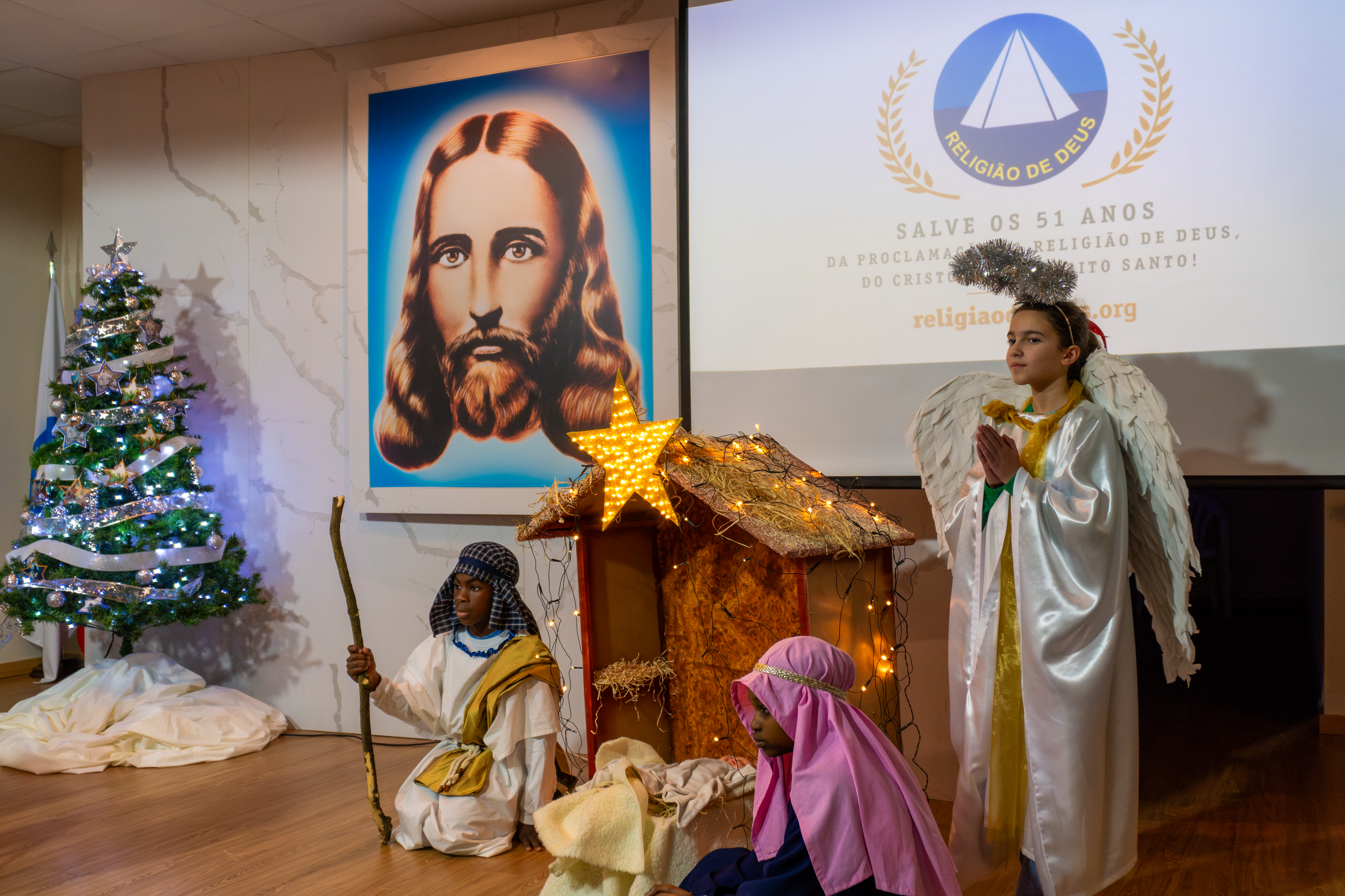 As crianças do Programa Semente da Boa Vontade apresentaram, no sábado, dia 21, no Espaço de Cultura Ecuménica da LBV na cidade do Porto, perante uma plateia de familiares, amigos, colaboradores e voluntários da LBV, a encenação teatral O Nascimento de Jesus e uma coreografia da música A Todos Um Bom Natal!