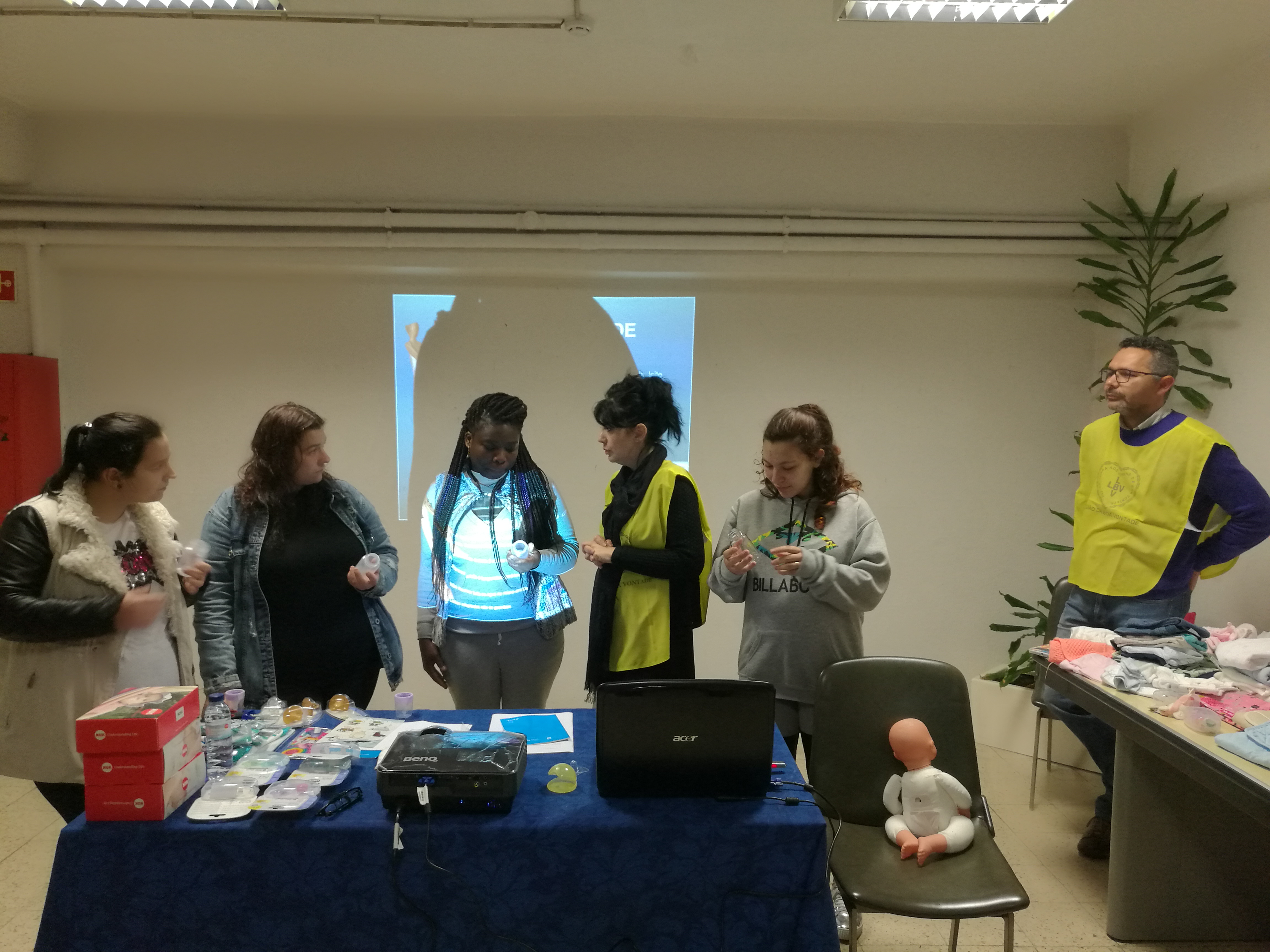 Após uma vertente mais teórica, mas sempre muito interventiva por parte das utentes, foi feita uma dinâmica entre as mamãs e colaboradores da LBV, com o intuito de reforçar as aprendizagens. Sendo que no fim da dinâmica, a Enfermeira Cristina presenteou as utentes com biberões e chupetas para os seus bebés.