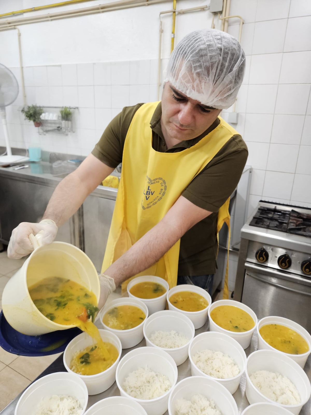 Estes voluntários prepararam a alimentação a ser distribuída no Programa Ronda da Caridade, de apoio à pessoa em situação de sem-abrigo, desde os legumes usados na sopa até ao empratamento da mesma, kit’s de lanche, artigos de higiene e os vestuários/agasalhos.