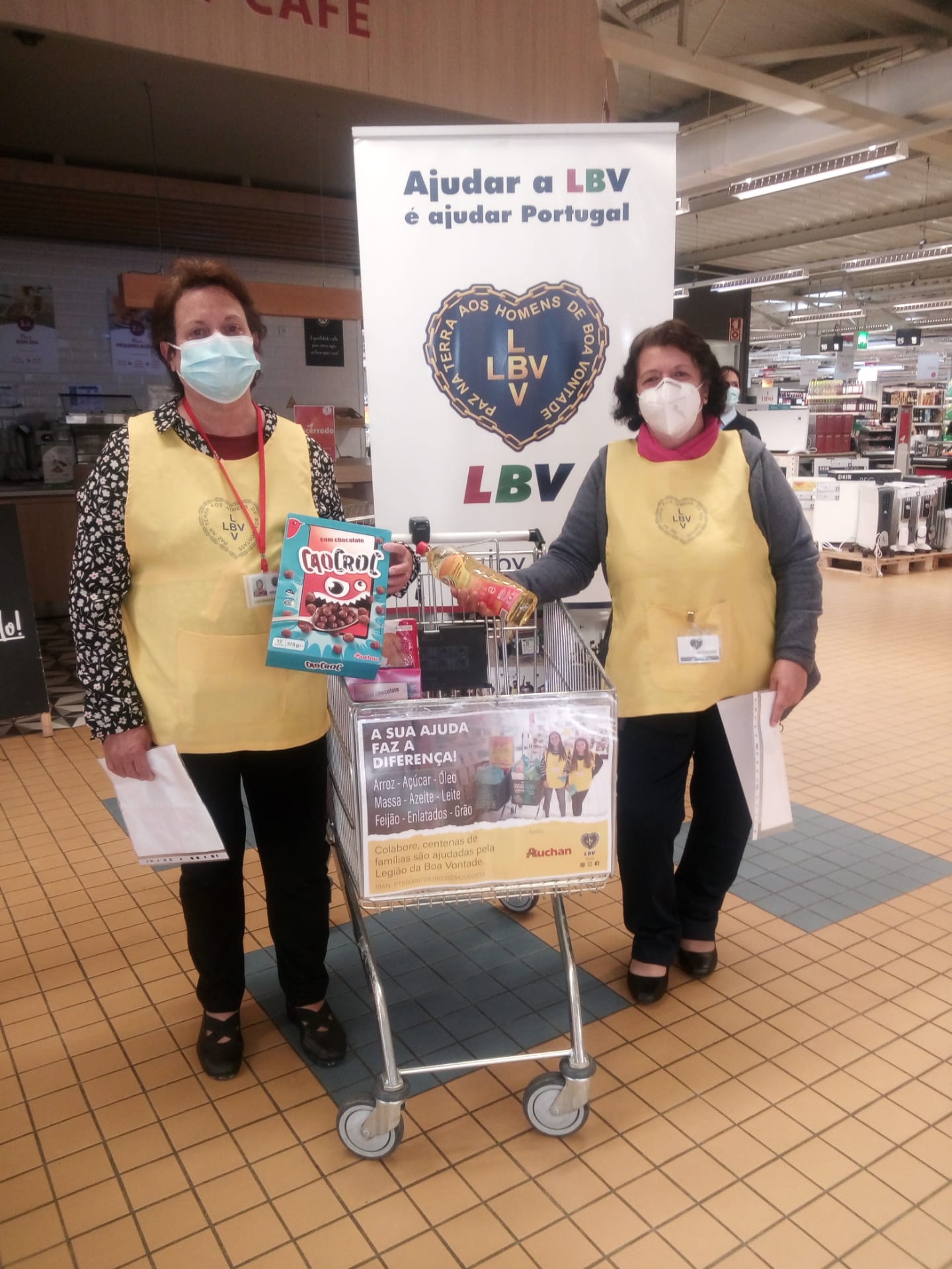 A LBV tem estado a realizar recolhas de alimentos em hipermercados. Para esta ação contamos com a imprescindível presença de voluntários que com a sua simpatia, disponibilidade e Boa Vontade apelam aos corações para na medida do que puderem doarem alimentos que farão parte dos cabazes a entregar a famílias em situação de carência inscritas no Programa Um Passo em Frente da LBV.