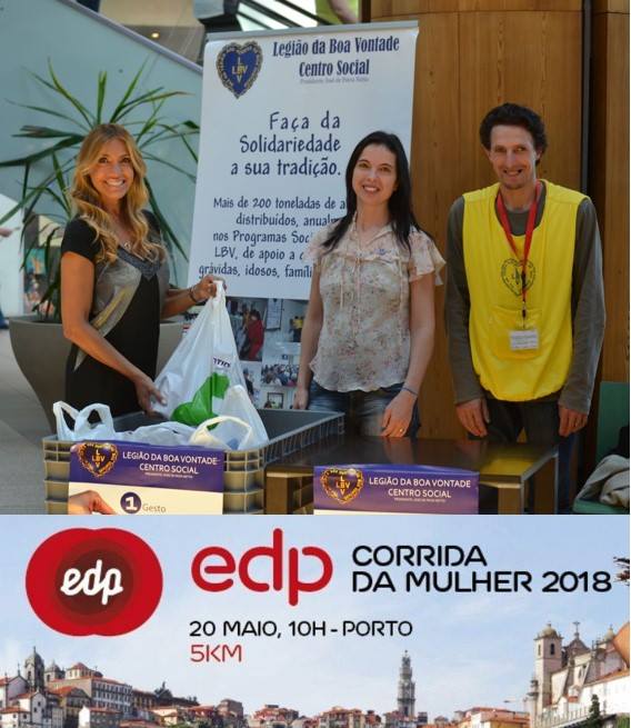 A Runporto e a Legião da Boa Vontade solicitam às participantes da 13ª edp Corrida da Mulher para doarem um alimento não perecível ou mais (massa, arroz, azeite, leite, etc.), quando forem levantar o seu dorsal, nos dias 18 e 19 de maio, no Centro Comercial Alameda.