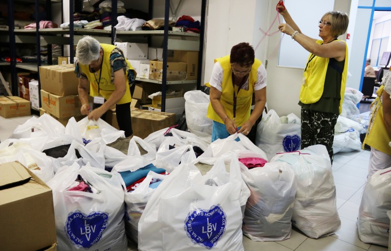Doação de roupas, calçado, edredons, artigos de higiene e água entregue pela LBV em Pedrógão Grande