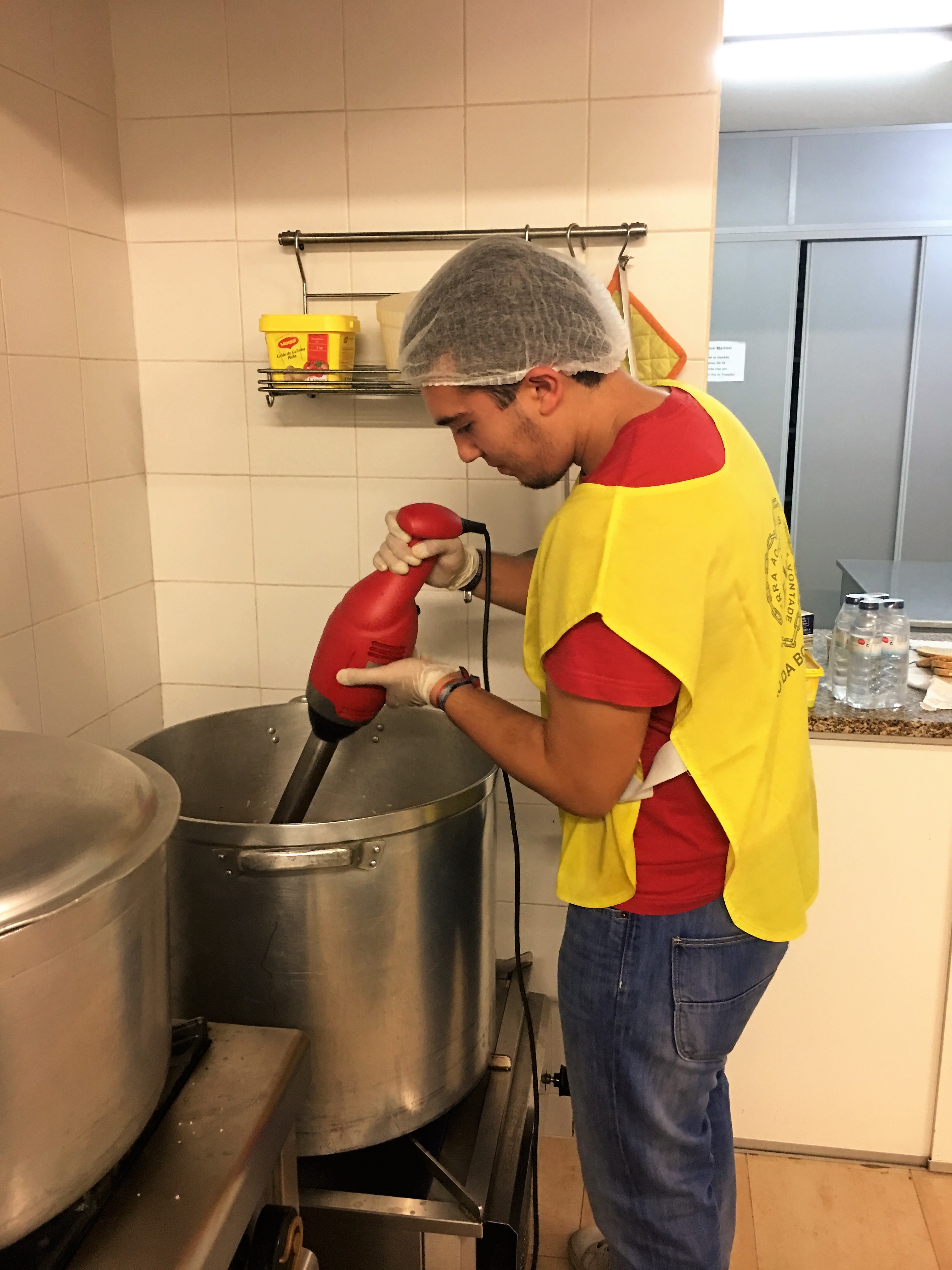 Todos os kit’s de lanche foram feitos pelos estudantes, devidamente orientados pelas seniores que, felizes pela presença dos jovens, com eles partilham histórias de vida, risos e muitos sorrisos. Mas, a verdadeira aventura foi a confeção da sopa. Para prepararem 80 litros de sopa, tiveram a colaboração do voluntário Jorge Coelho que, com a sua experiência, os ensinou a arranjarem os legumes, descascarem as batatas e as cebolas e a prepararem as carnes que sustentam a saborosa e nutritiva sopa que é servida à noite.