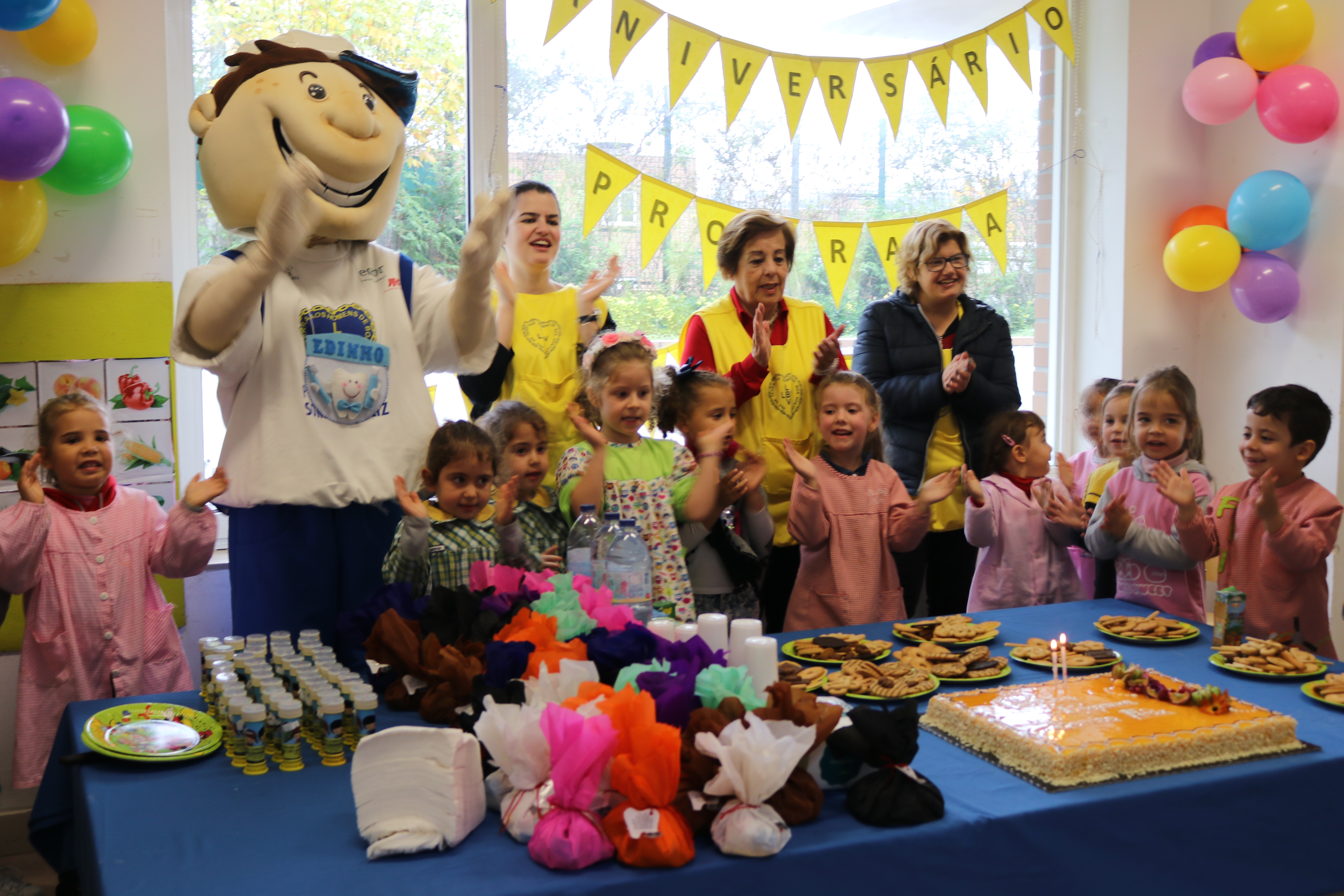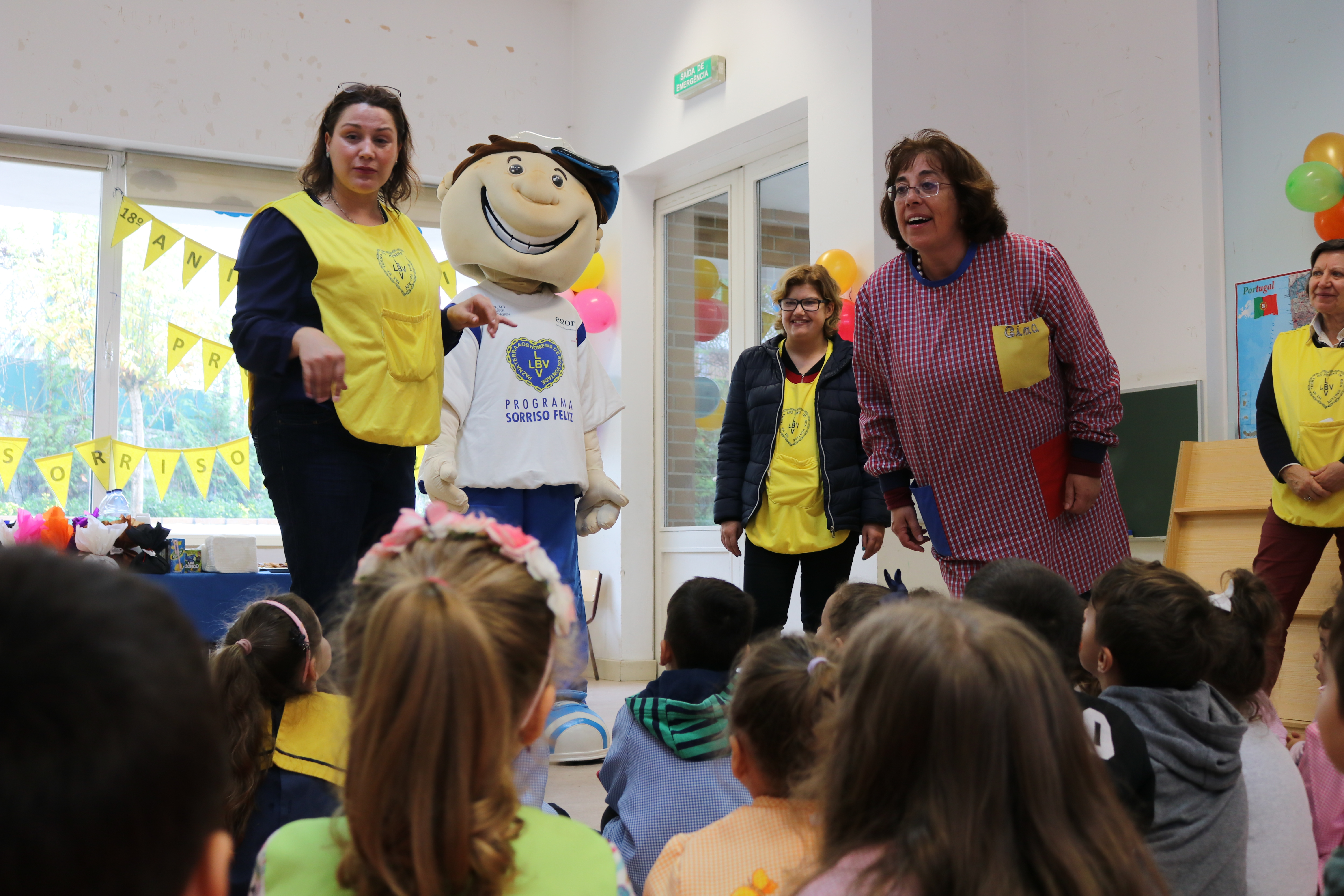 O Programa Sorriso Feliz completou 18 anos de ação em Portugal com festejos nos seus parceiros sociais, nos quais a LBV promove a adoção de uma rotina de saúde oral, de norte a sul do país! A festa contou com a entrega de lembranças às crianças e porque a data foi de festa não faltaram os doces com a orientação da realização de uma correta escovagem dos dentes após o lanche!