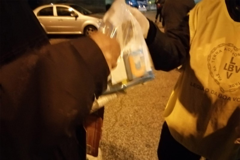 Entrega de pequeno-almoço, ao sem-abrigo inscrito no Centro Social da Legião da Boa Vontade