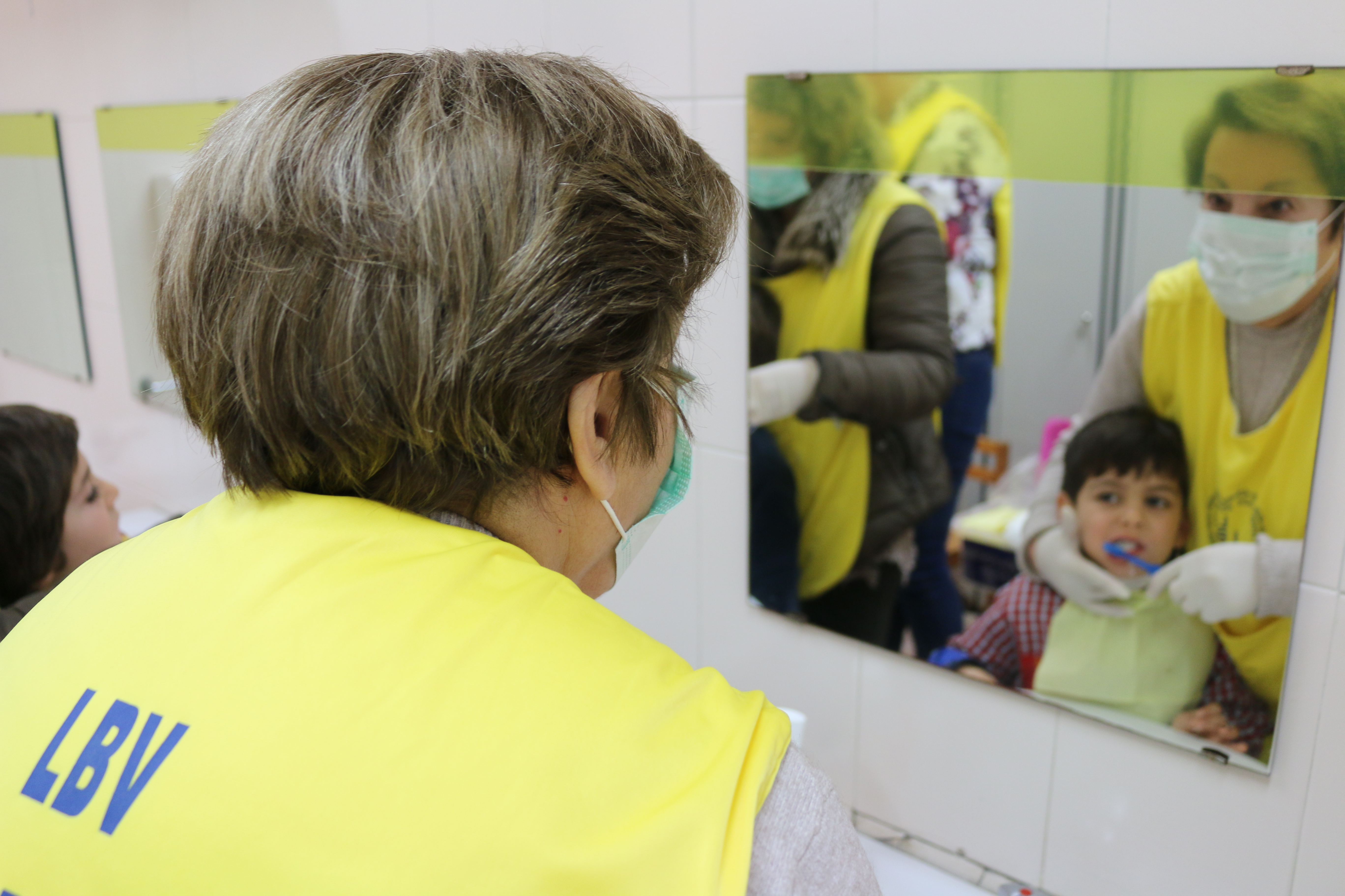 Após a realização de uma correta escovagem dos dentinhos, as crianças estiveram na “carrinha mágica”, Unidade Móvel de Saúde Oral da LBV que permite fazer uma observação da boca da criança e onde hoje foi realizada a aplicação tópica de flúor, para fortalecer os dentinhos destes pequenos. A aplicação realizada é desenvolvida de 6 em 6 meses e requer a autorização dos respetivos tutores das crianças.