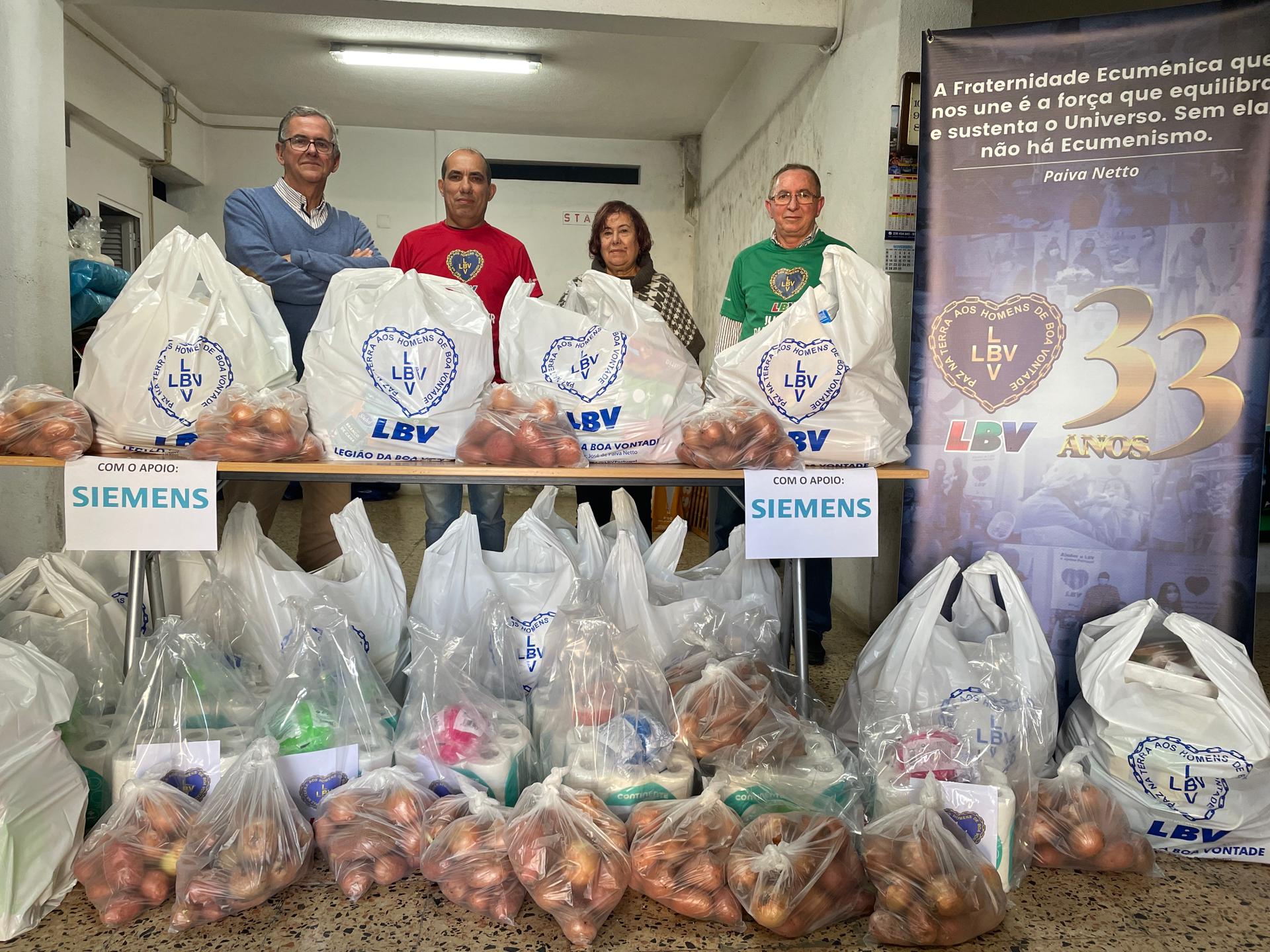 A SIEMENS realizou doação à LBV, em dezembro, para 100 cabazes alimentares destinados a famílias apoiadas pela instituição.