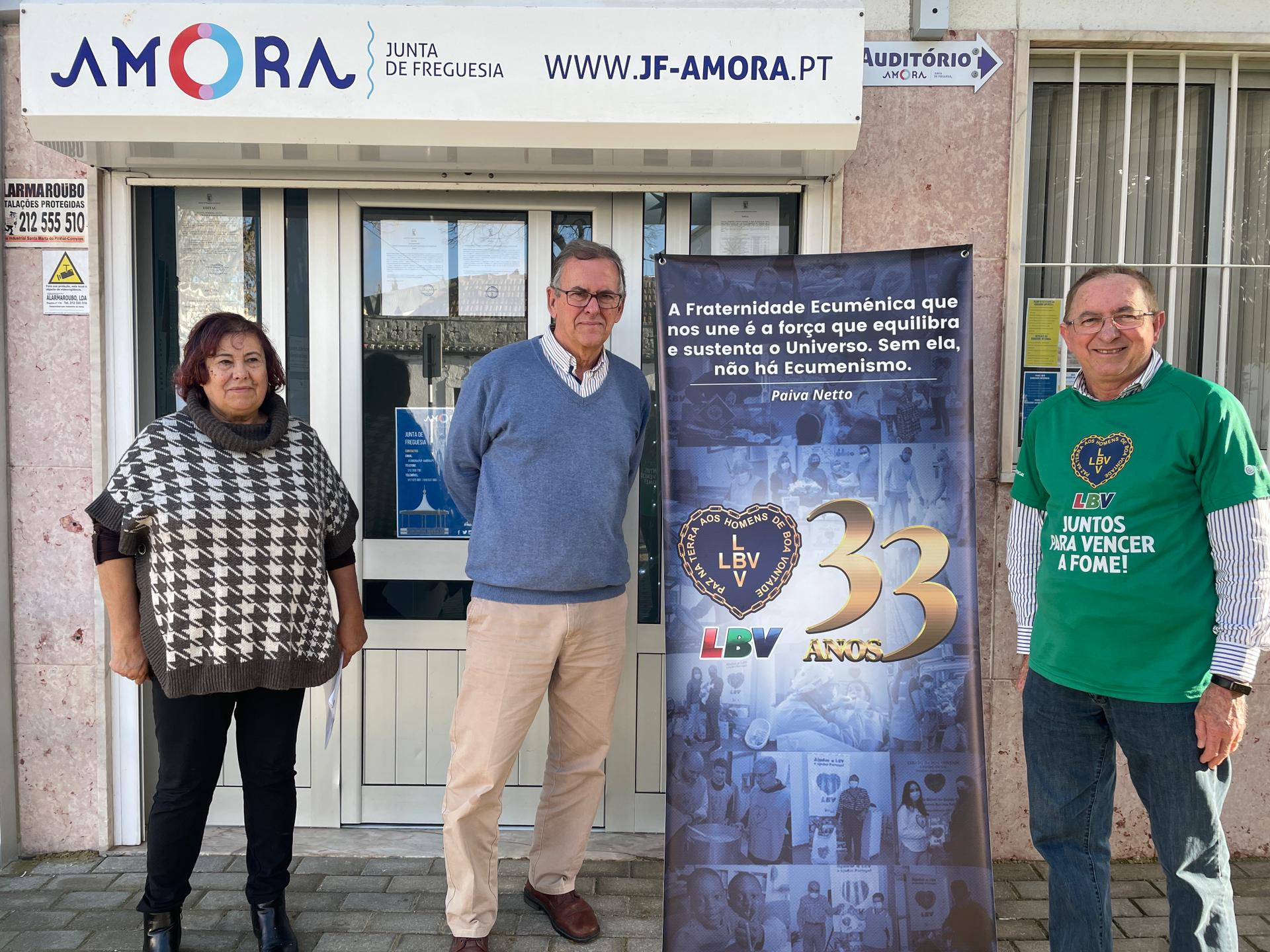 A LBV foi entregar 15 cabazes que a referida Junta de Freguesia fez chegar a famílias prejudicadas com as chuvas daquela altura. O Presidente da Junta Freguesia de Amora, Manuel Ferreira Araújo e a secretária Maria Helena Arraiolos Quinta receberam a LBV, tendo agradecido este apoio.