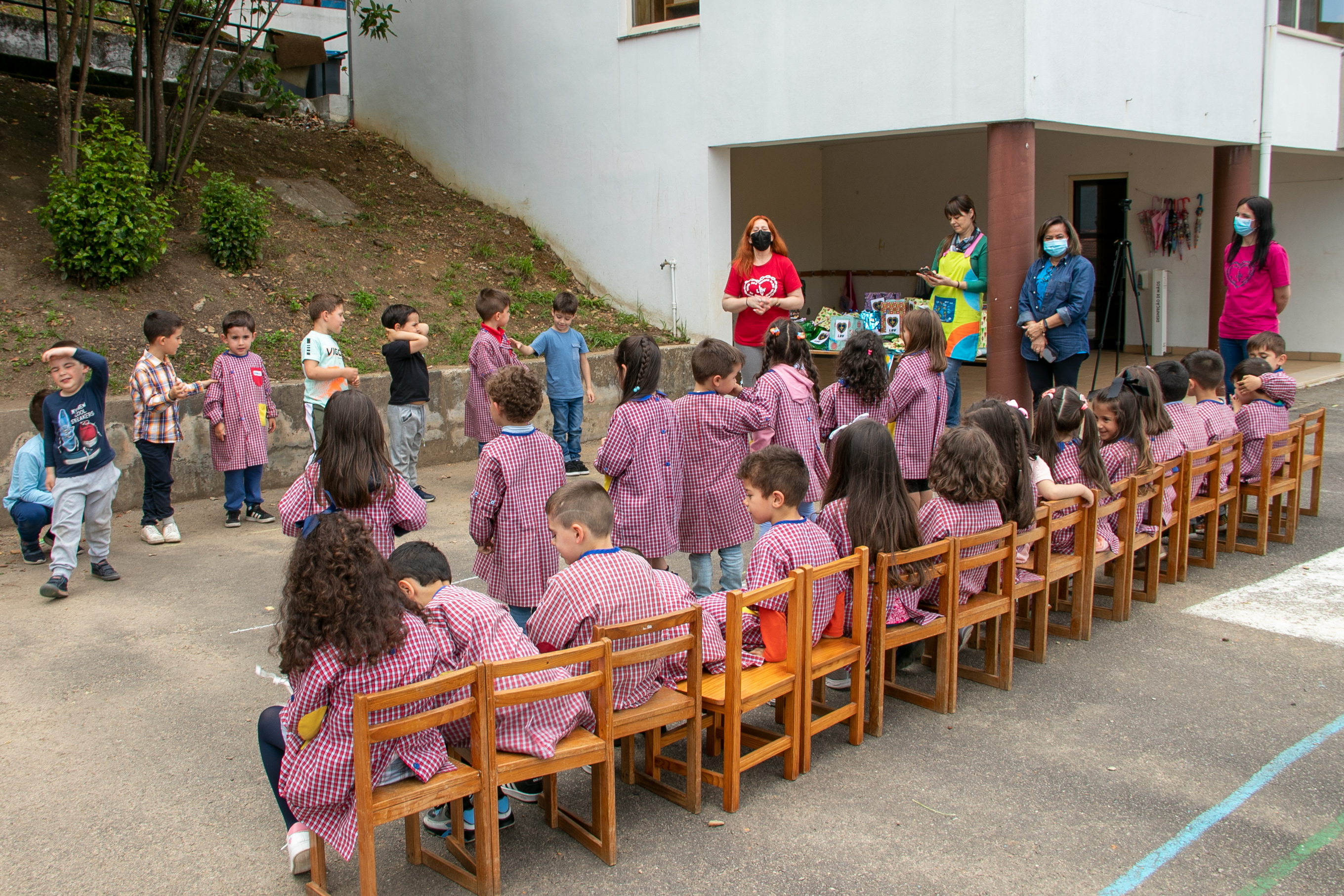De manhã, no Jardim de Infância O Mineiro, duas salas do pré-escolar prepararam coreografias, músicas, para agradecer a presença das atividades do Sorriso Feliz, durante o ano letivo, online no início e presencial nas últimas semanas, na sua escola. Foram lembrados os ensinamentos sobre os cuidados com a saúde oral, a higiene, a escovagem, tão importante na prevenção de doenças como a cárie.